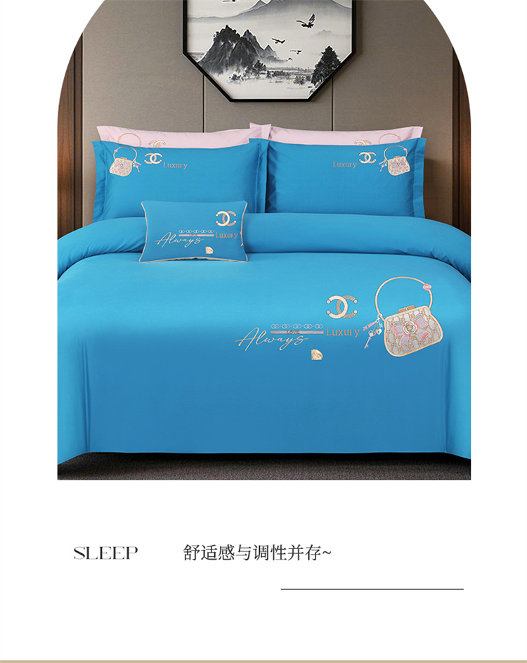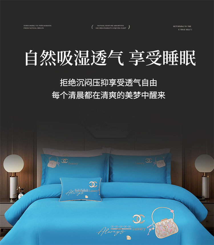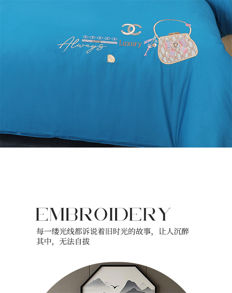 商品名称:浩情国际婚庆供货中心 2026新款100支全棉高端刺绣中式风四件套--米尔顿系列 米尔顿-宝石兰
