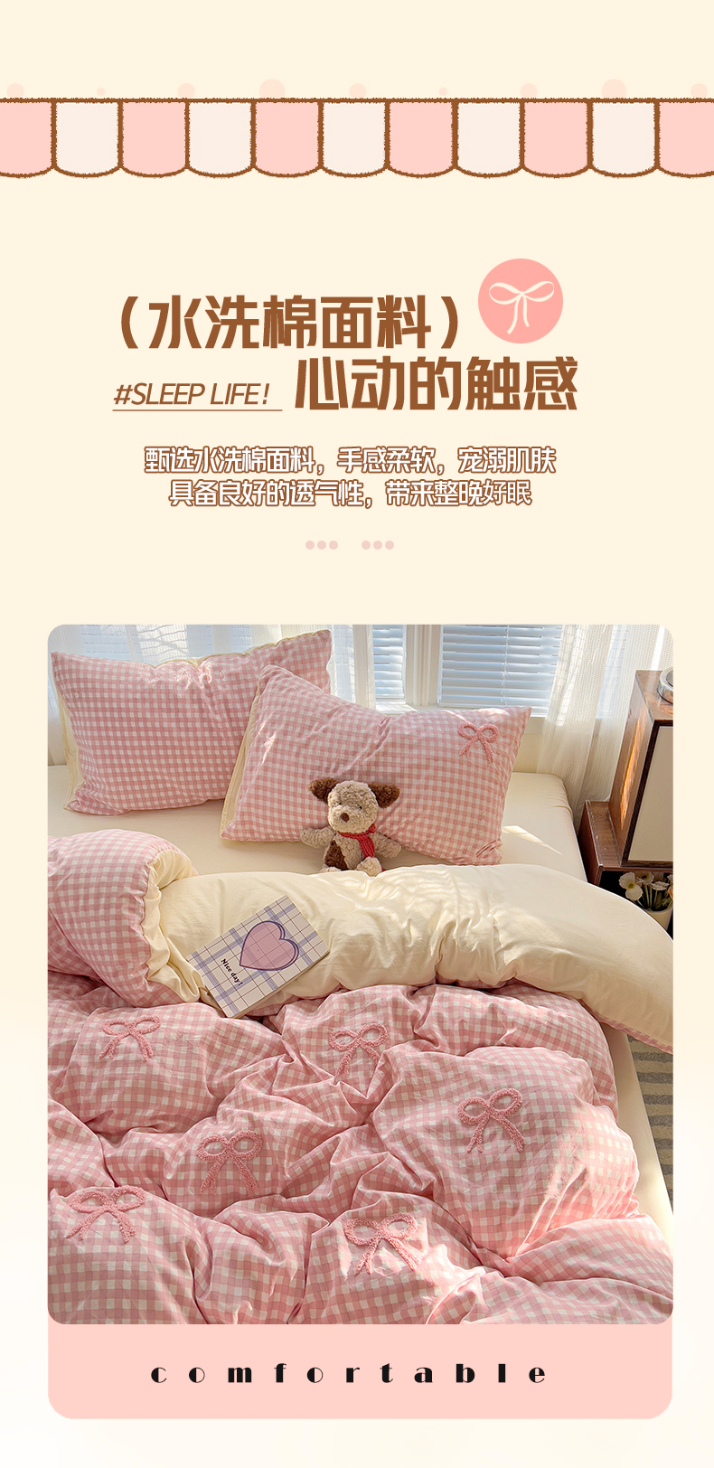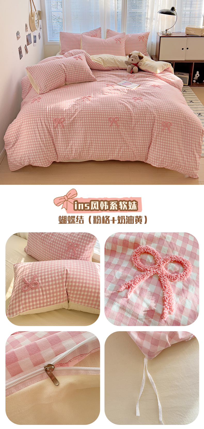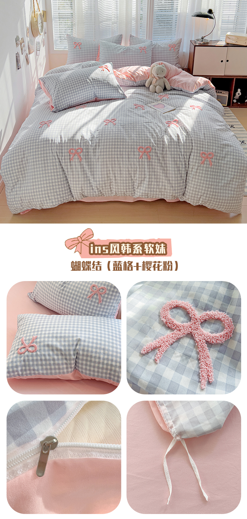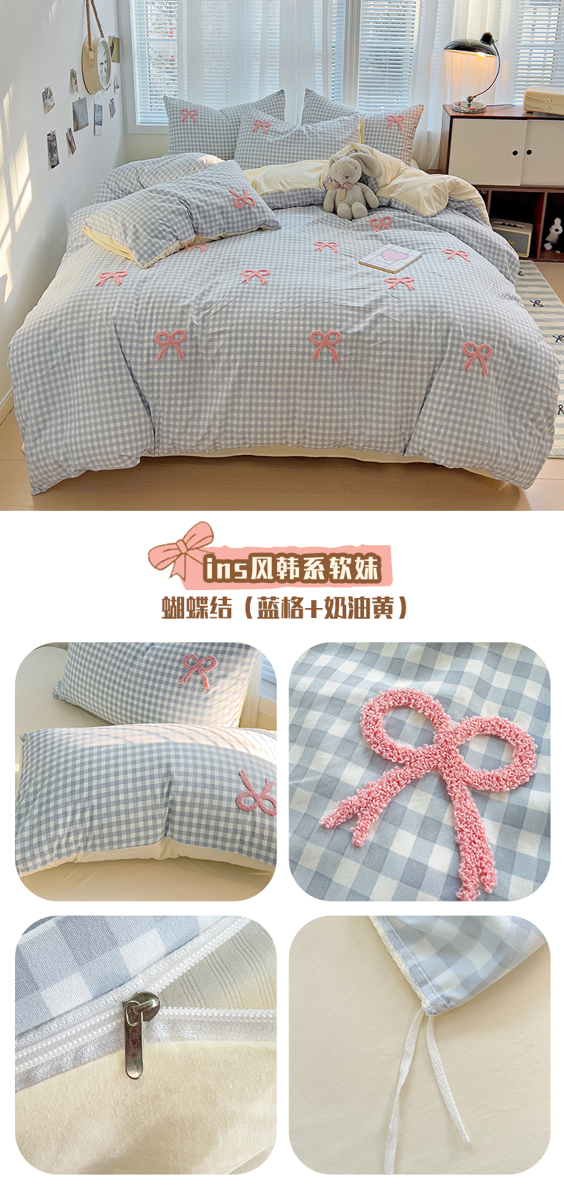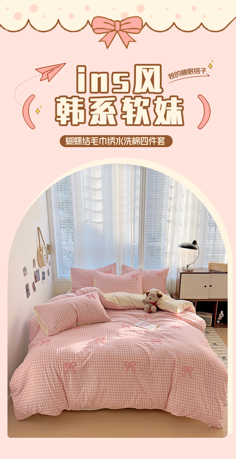 商品名称:(总)灰鲸2025新款ins韩系软妹风蝴蝶结毛巾绣四件套