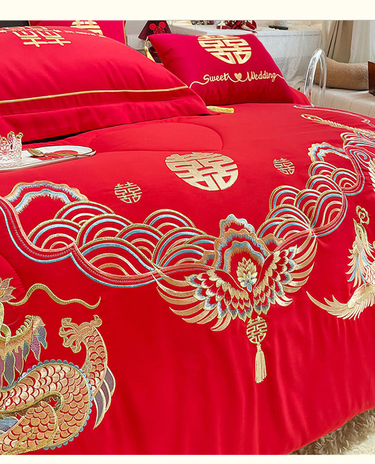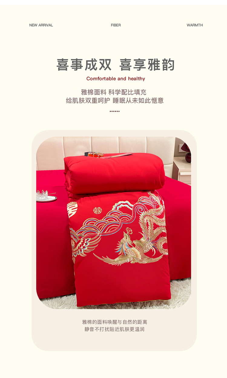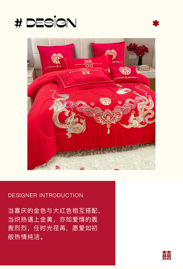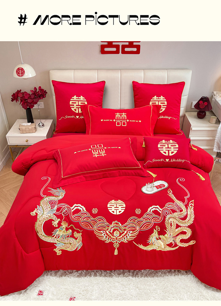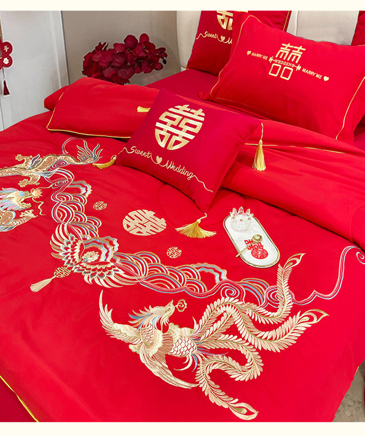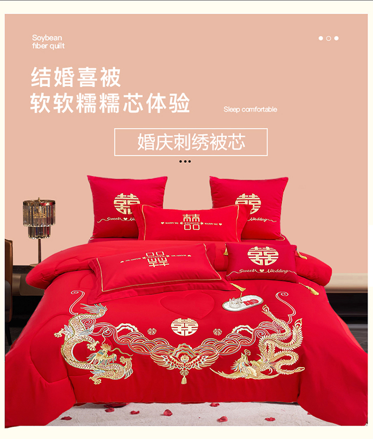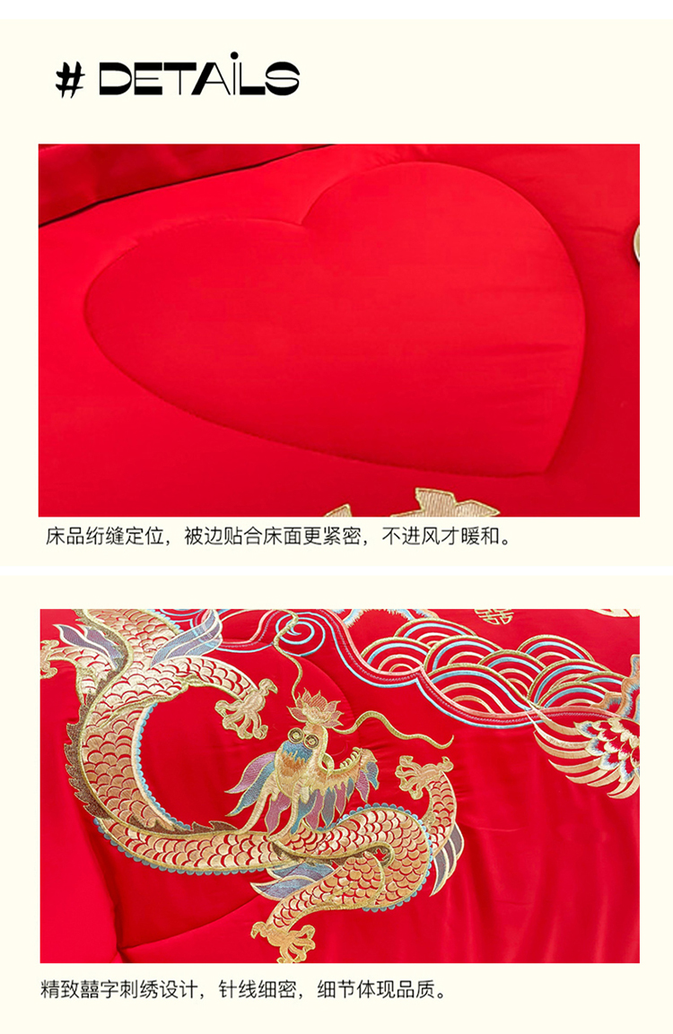 商品名称:甜咪咪婚庆 2025 新款居家婚庆刺绣结婚 春秋冬婚庆喜被 龙凤良缘
