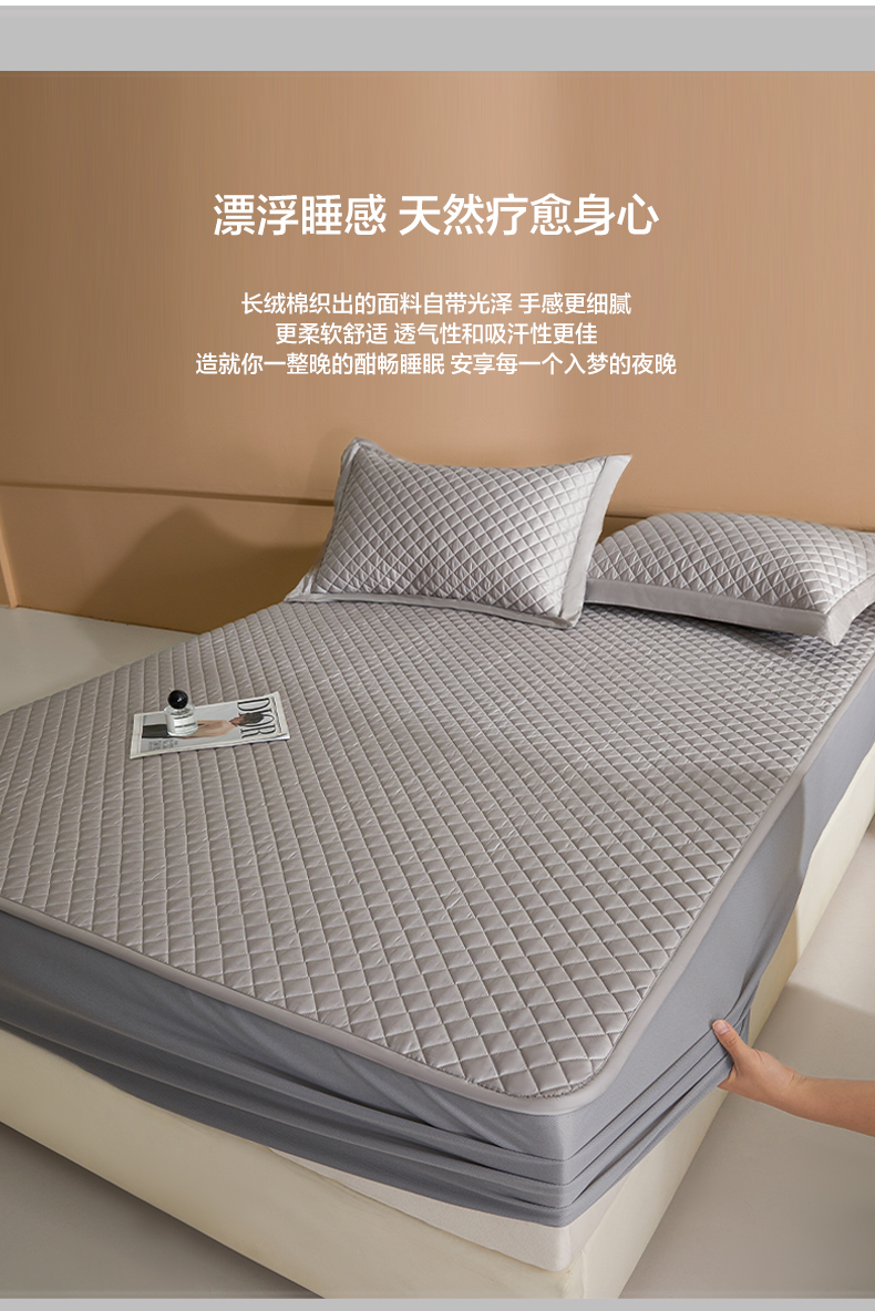 • 91家纺网 家纺一手货源 找家纺 由有2025新款60S长绒棉绗缝大豆夹棉床垫床褥床笠 平铺-高级灰