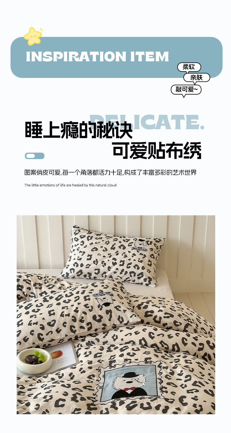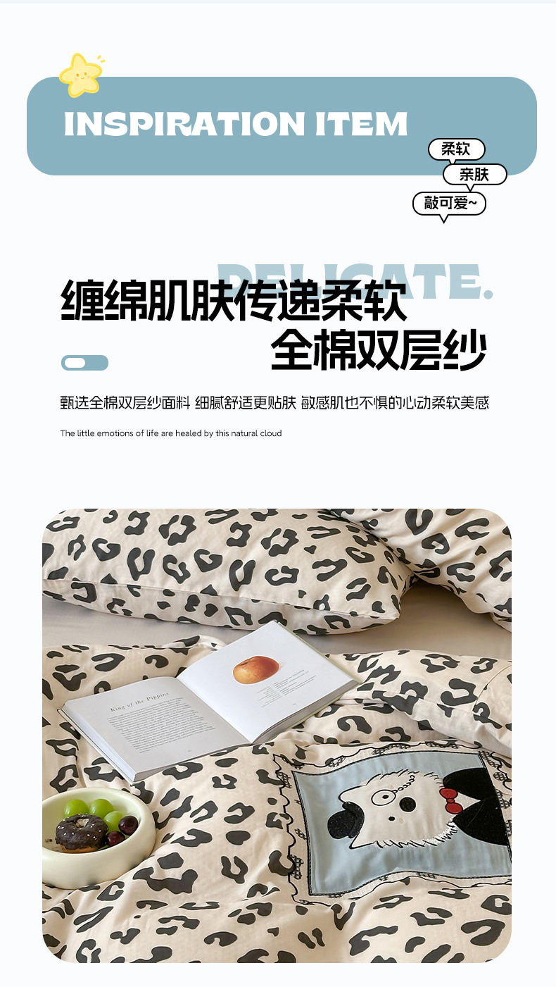 圆岛家纺 2025新款全棉双层纱贴布绣四件套 爵士小狗