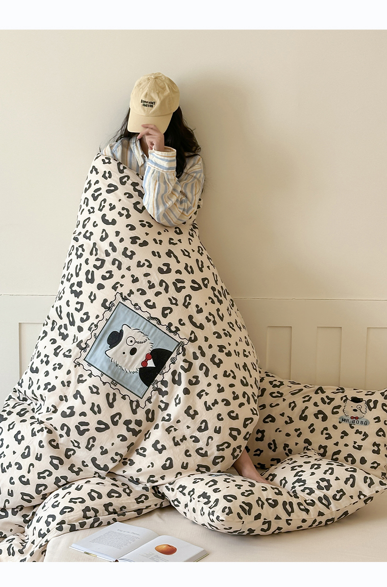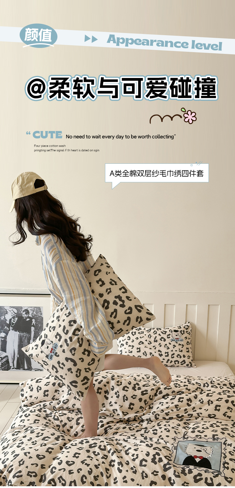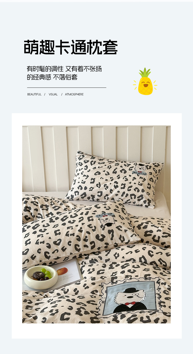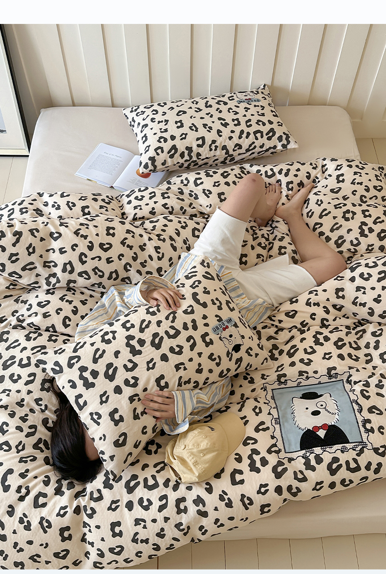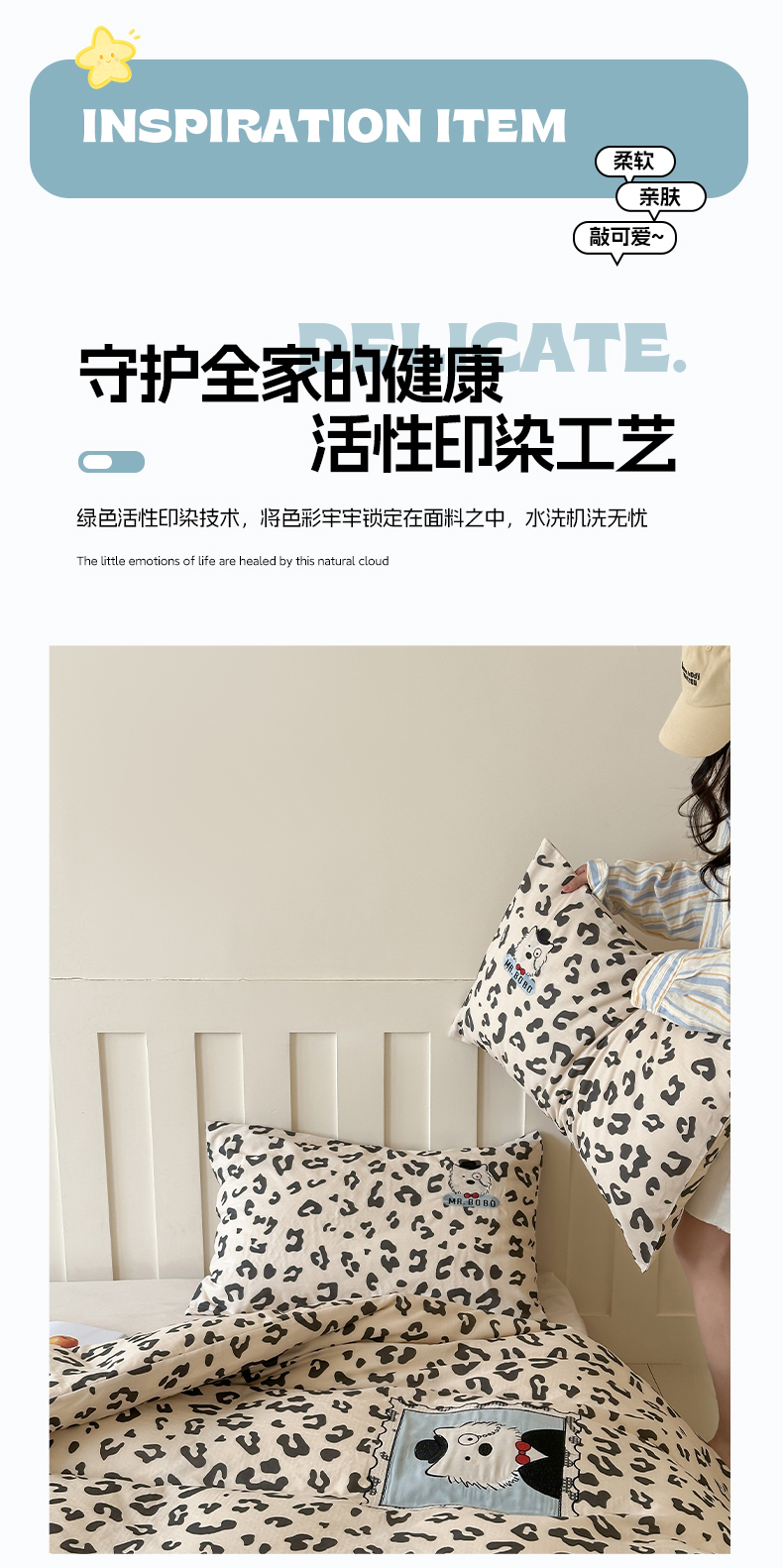 商品名称:圆岛家纺 2025新款全棉双层纱贴布绣四件套 爵士小狗
