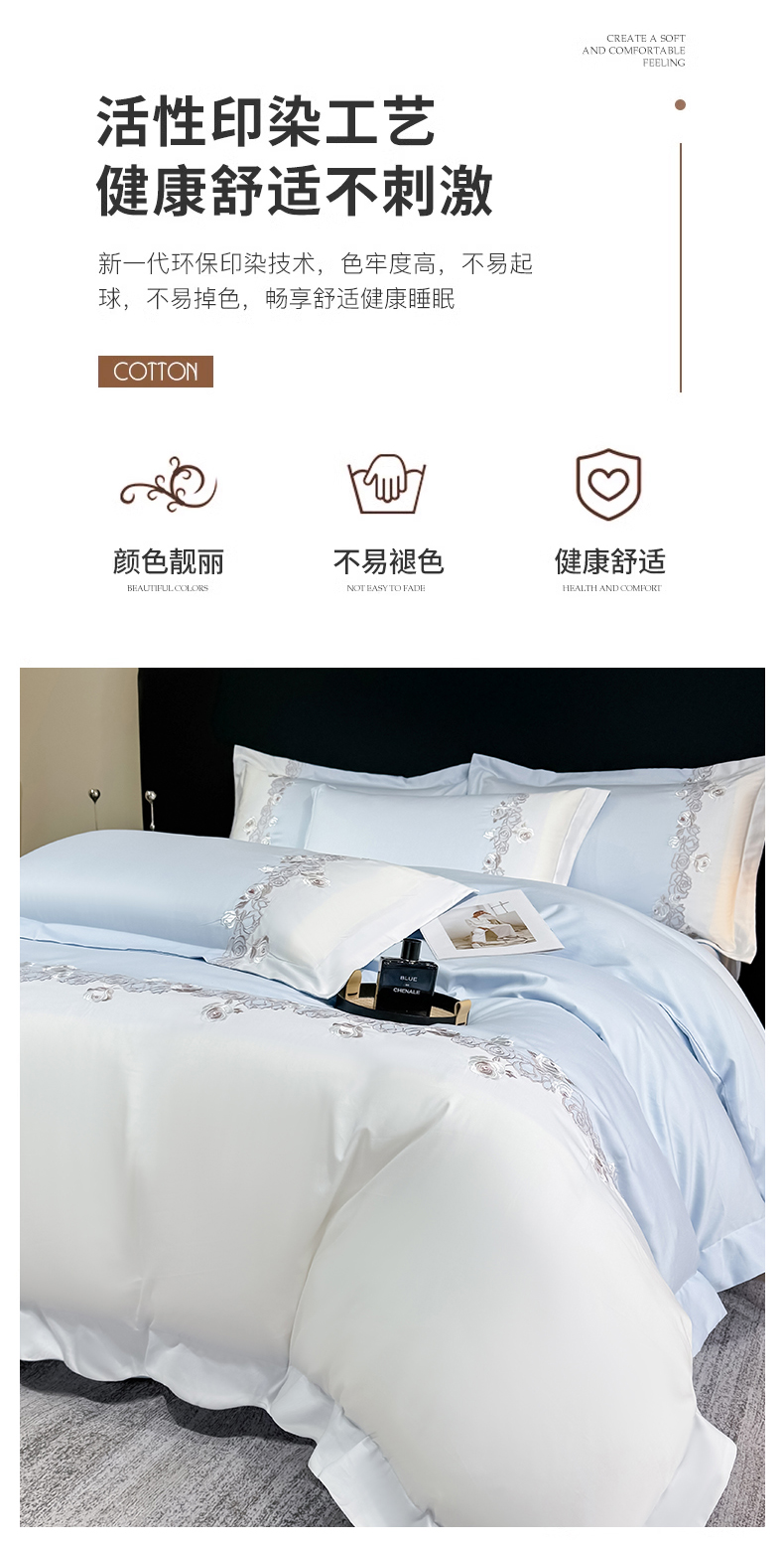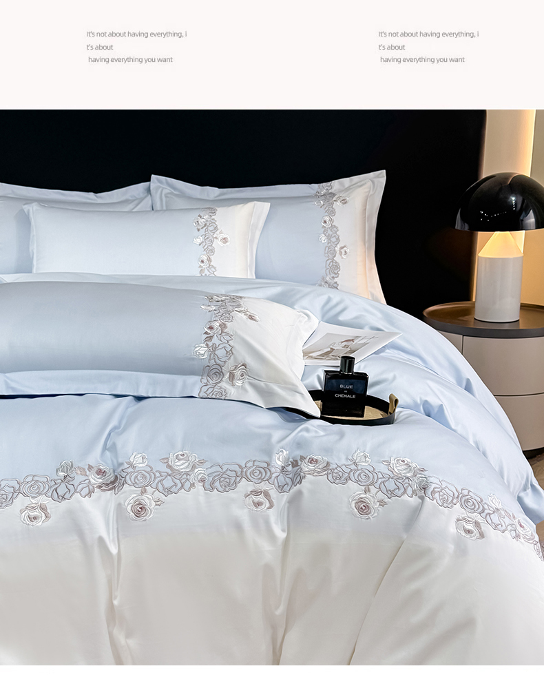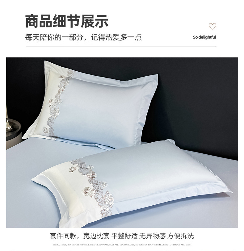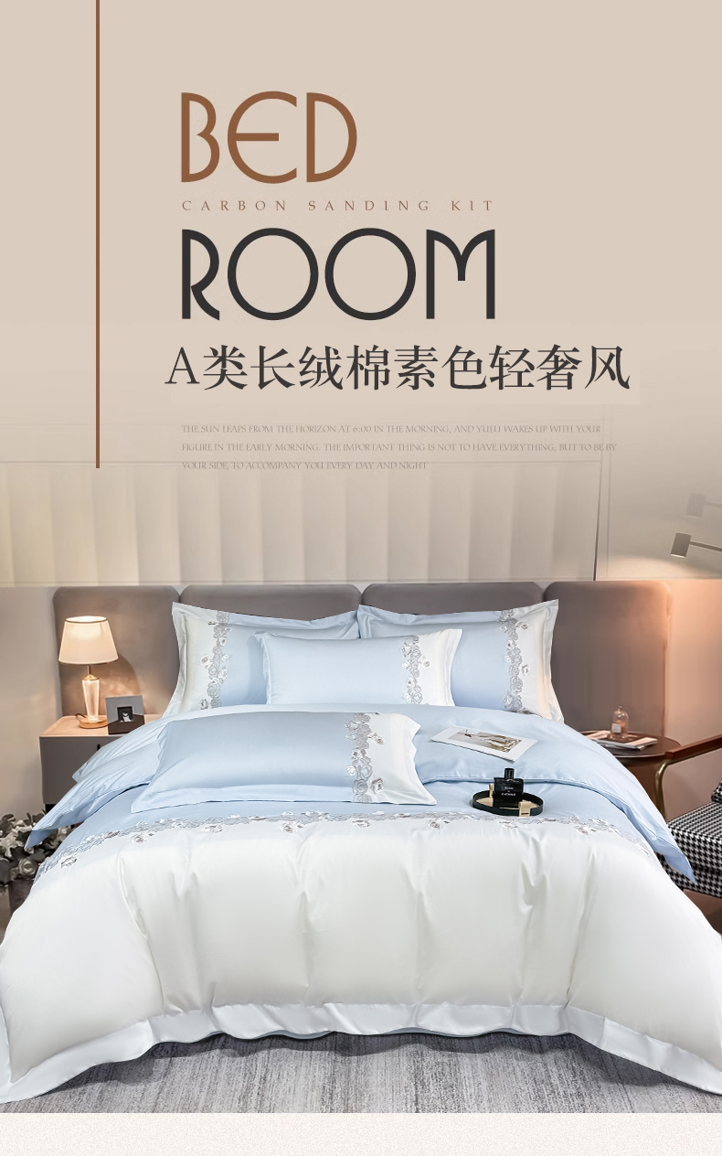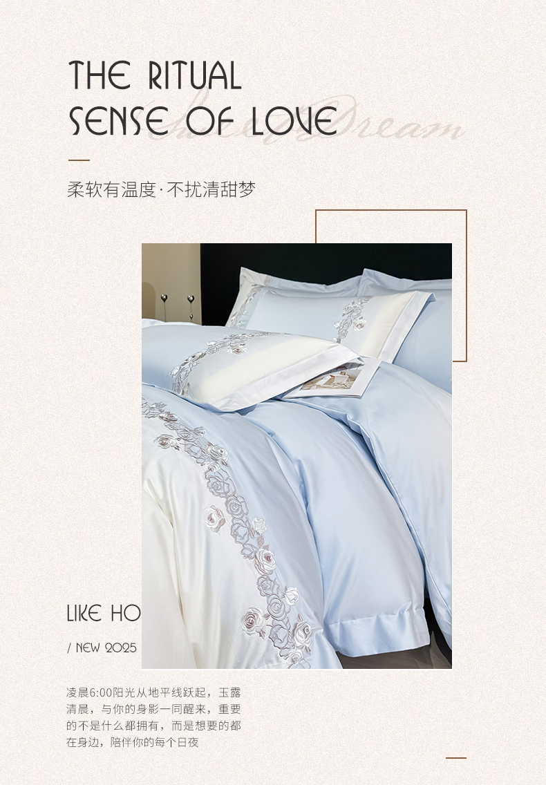 KA家纺 2025春夏新款全棉绣花四件套 初见系列 初见天空蓝