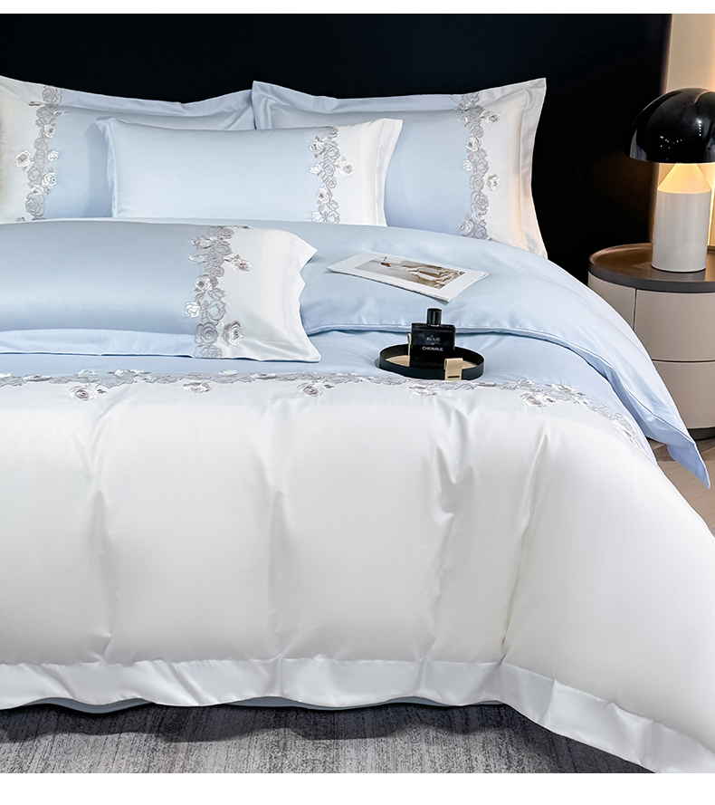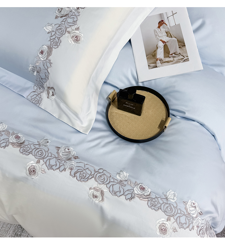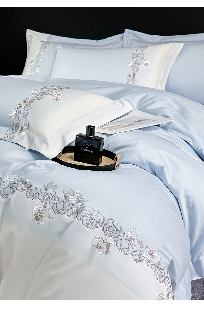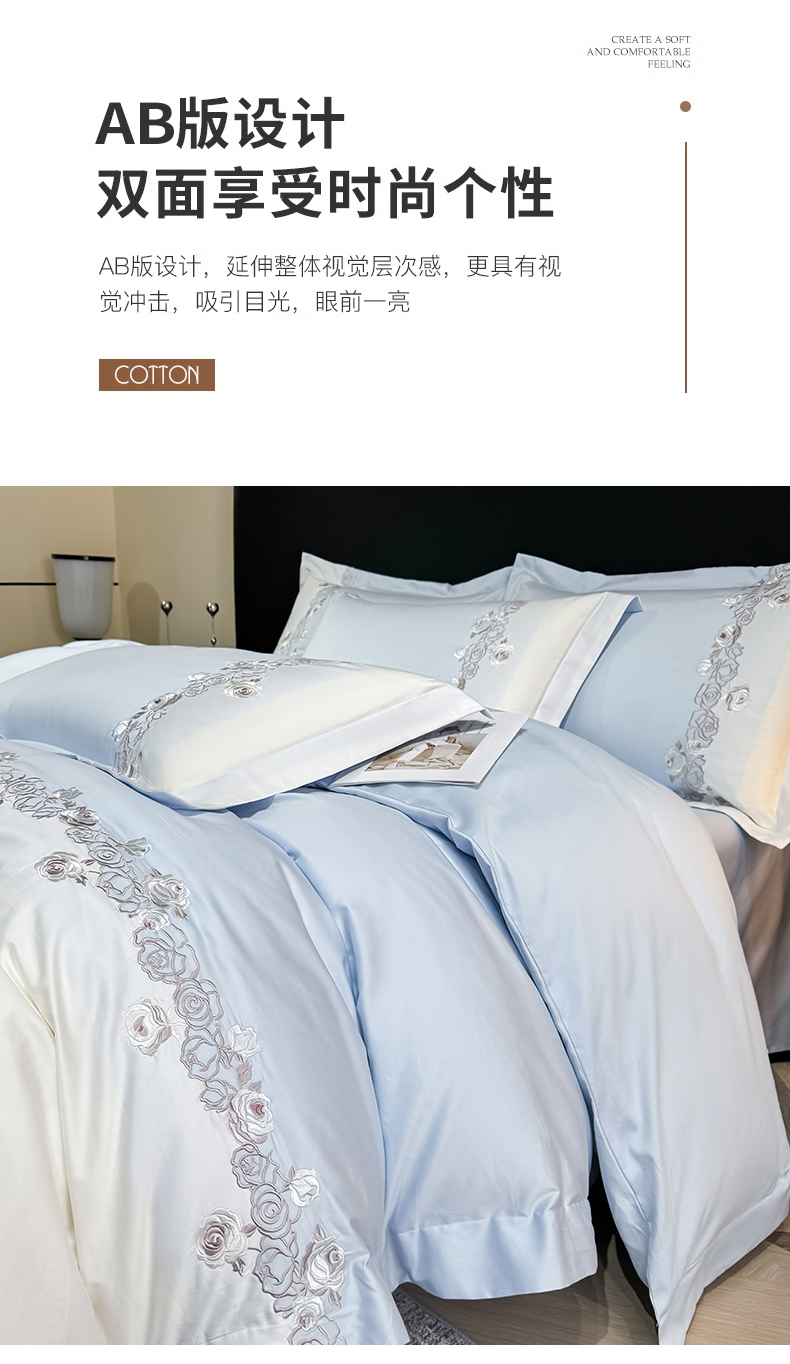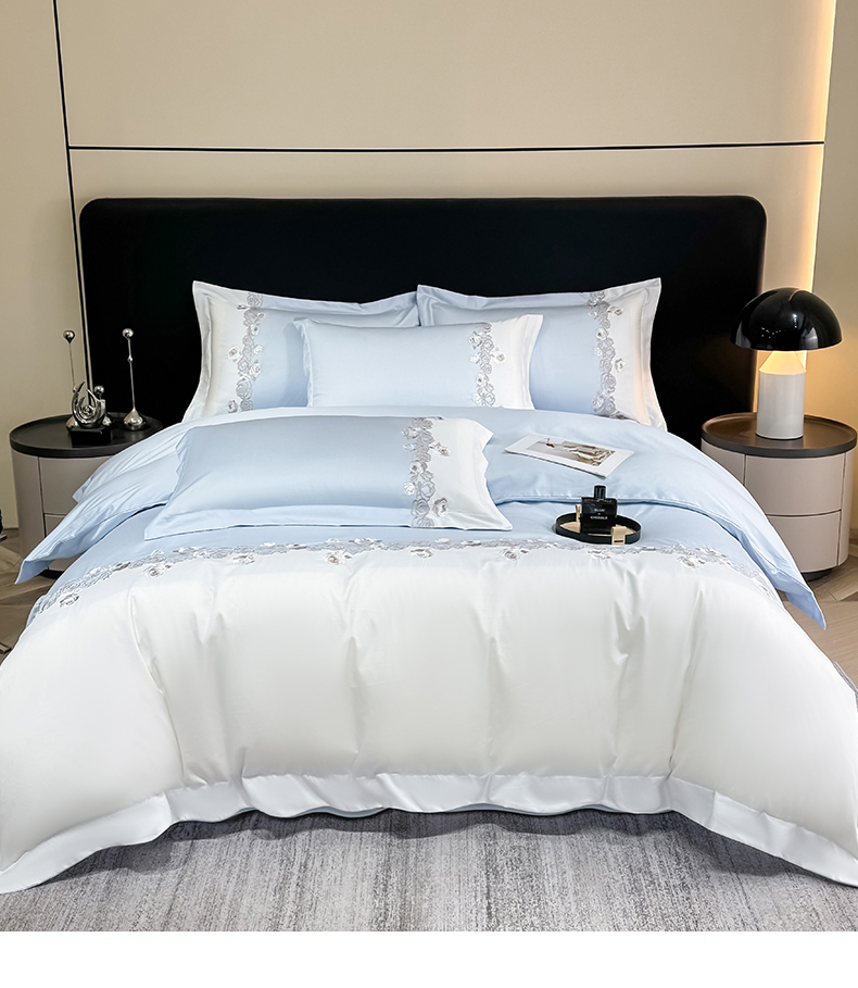 KA家纺 2025春夏新款全棉绣花四件套 初见系列 初见天空蓝