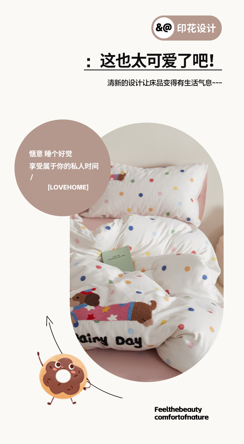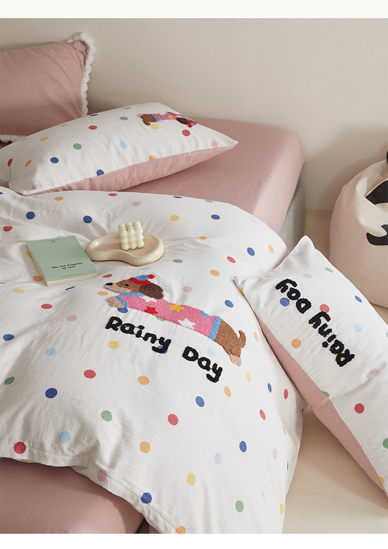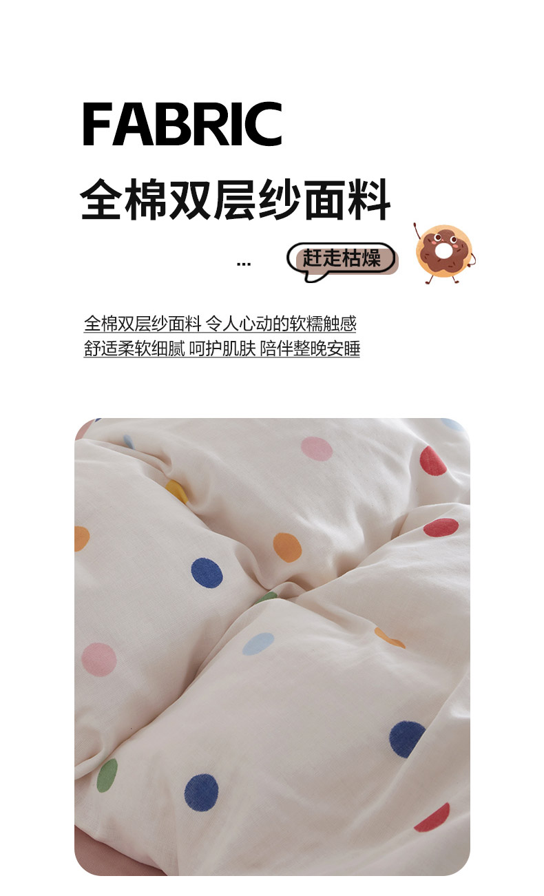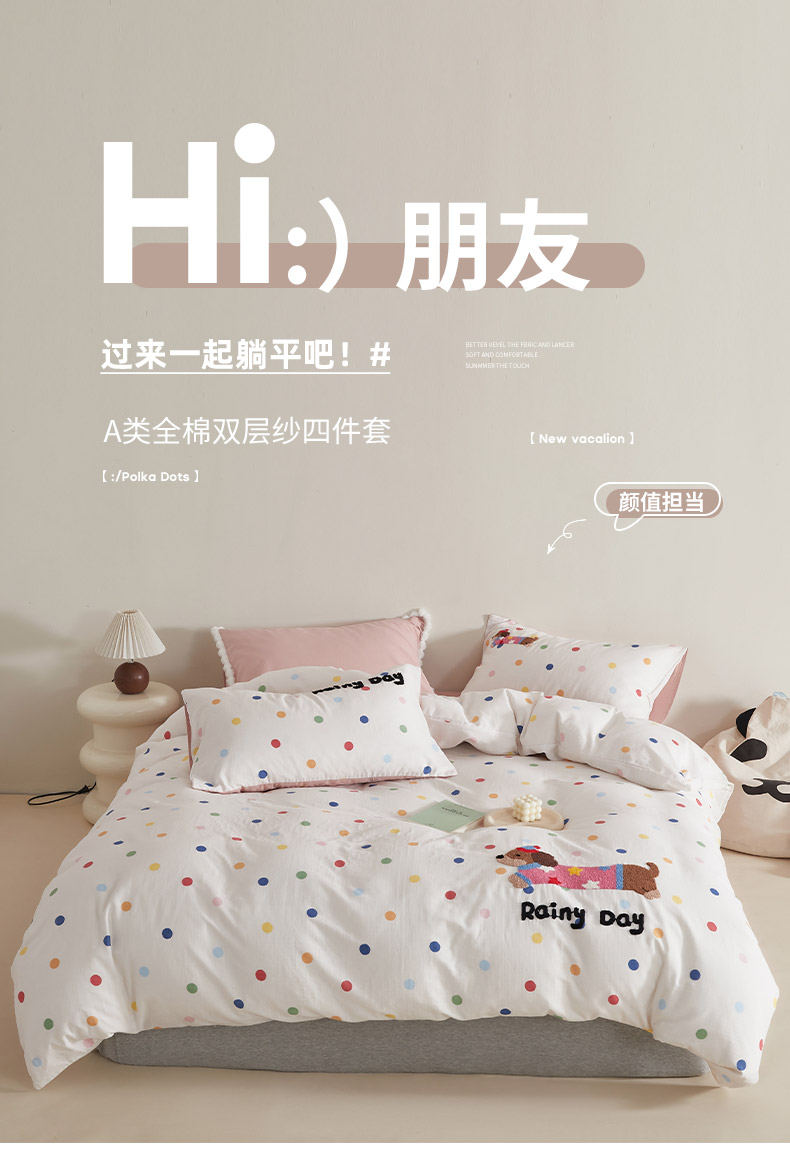 商品名称:怡家居 2025新款全棉双层纱可爱卡通毛巾绣四件套 点点小淘气