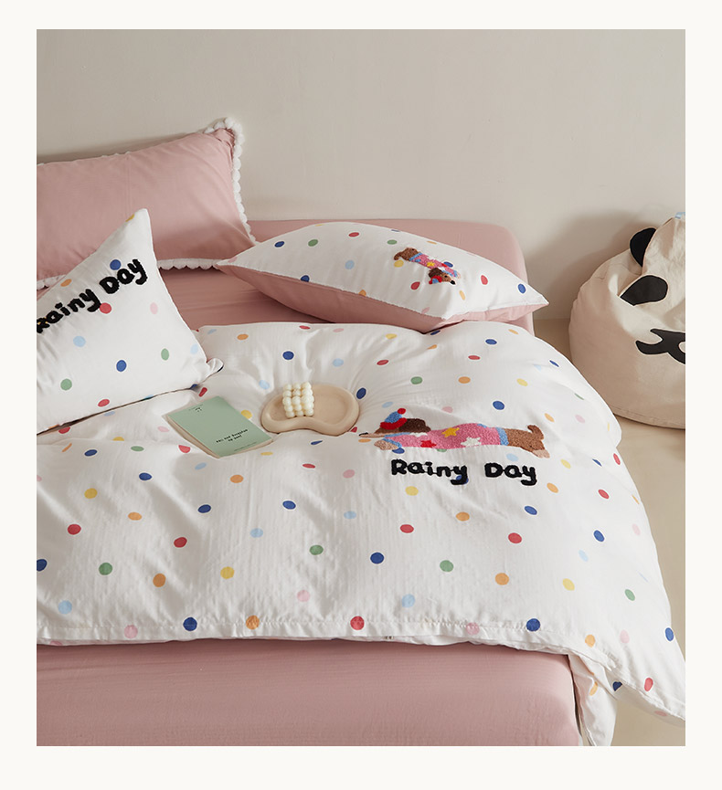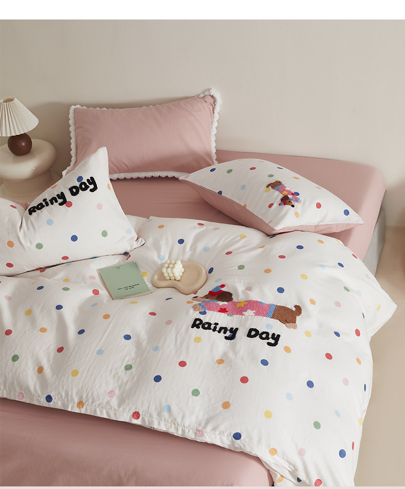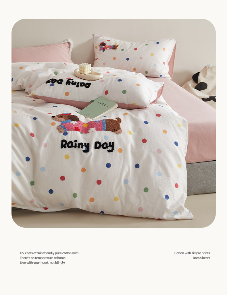 (总)怡家居 2025新款全棉纯棉磨毛绣花四件套-普通款,布丁狗,彩虹狗狗,魔法喵,七彩小熊,条纹小兔