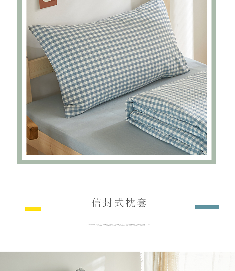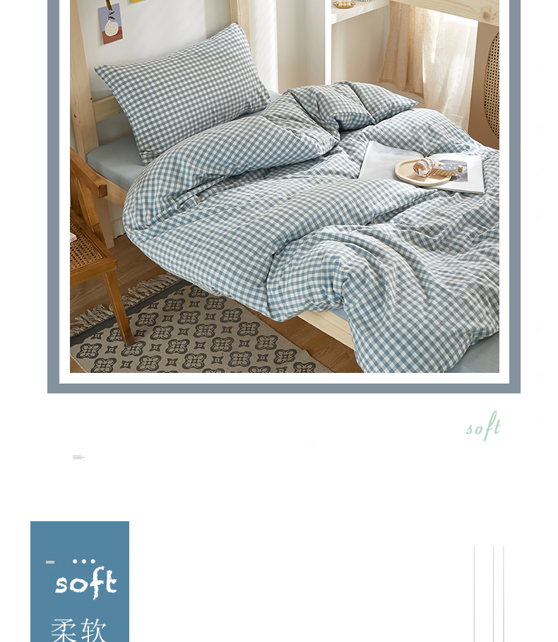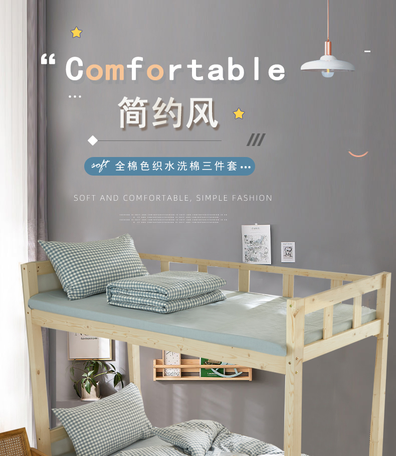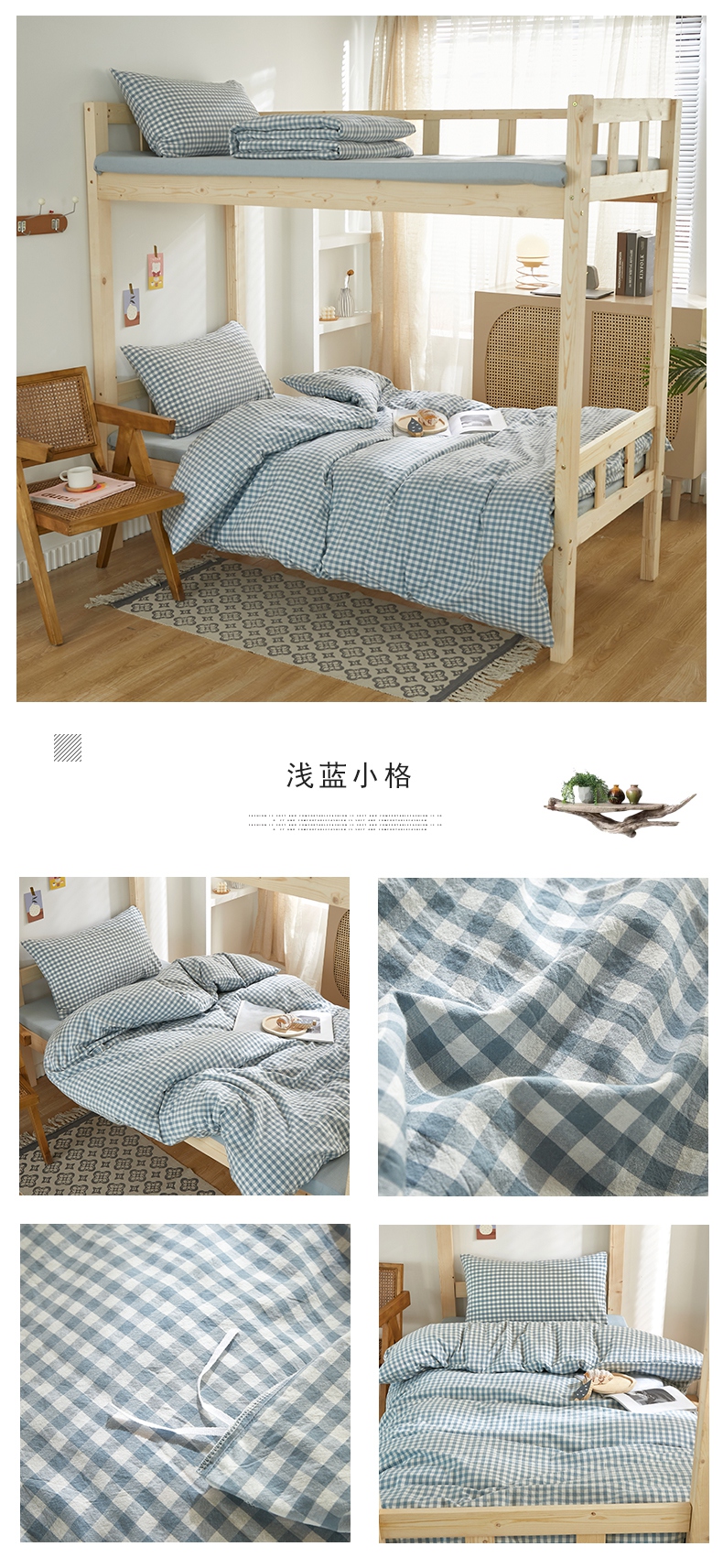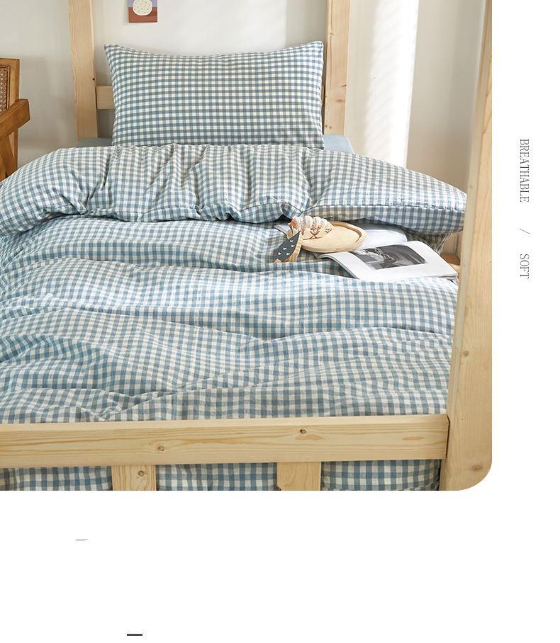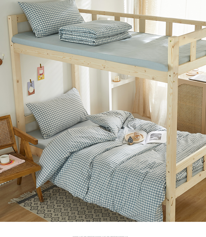商品名称:水洗的故事 2025新款开学季色织水洗棉学生宿舍三件套 浅蓝小格