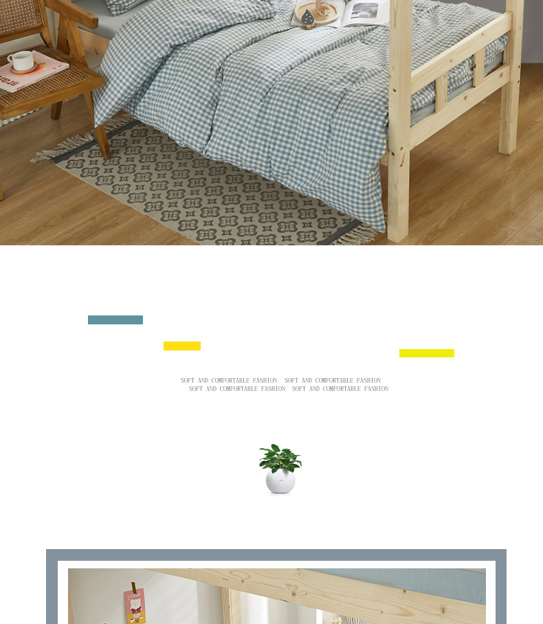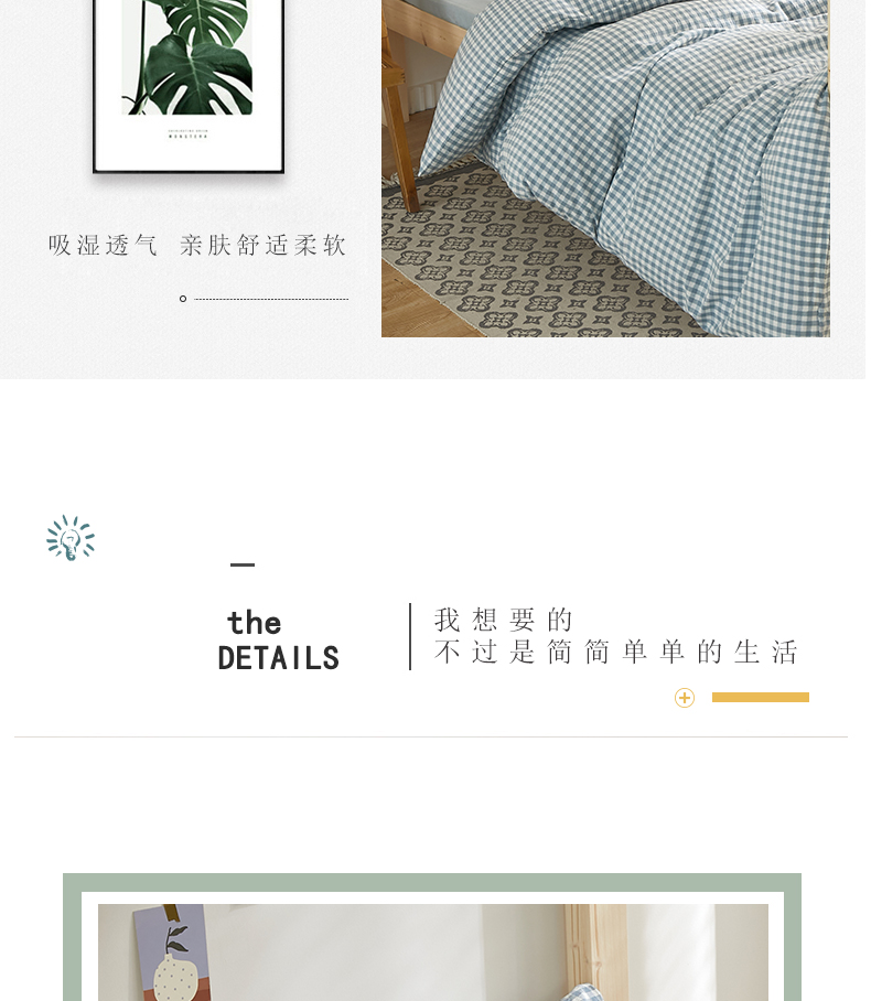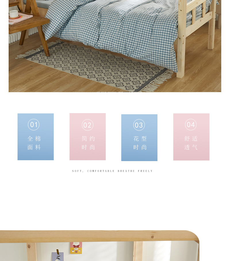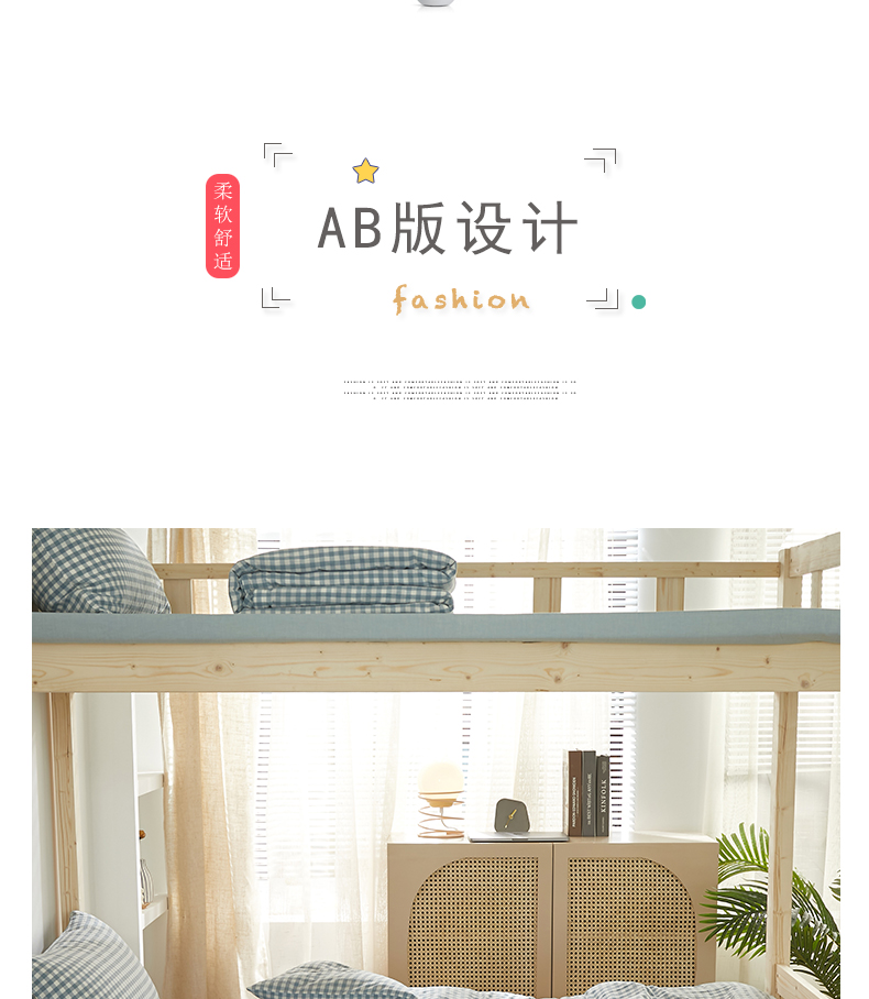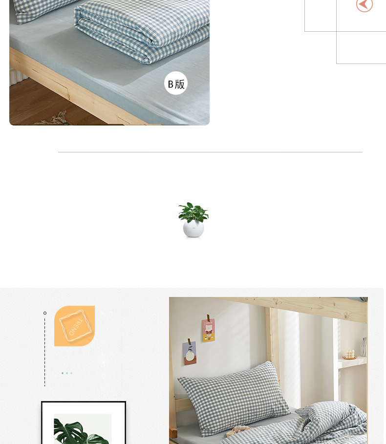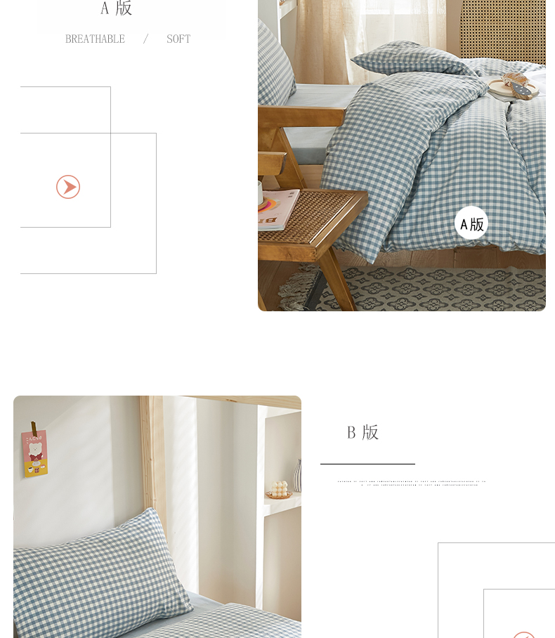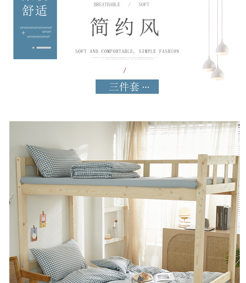 商品名称:水洗的故事 2025新款开学季色织水洗棉学生宿舍三件套 浅蓝小格