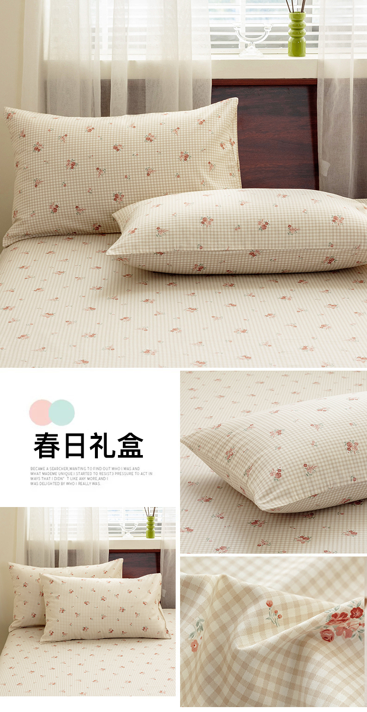 商品名称:绫韵 2025春夏新款ins清新卡通碎花全棉13372精梳纯棉单枕套系列 春日礼盒