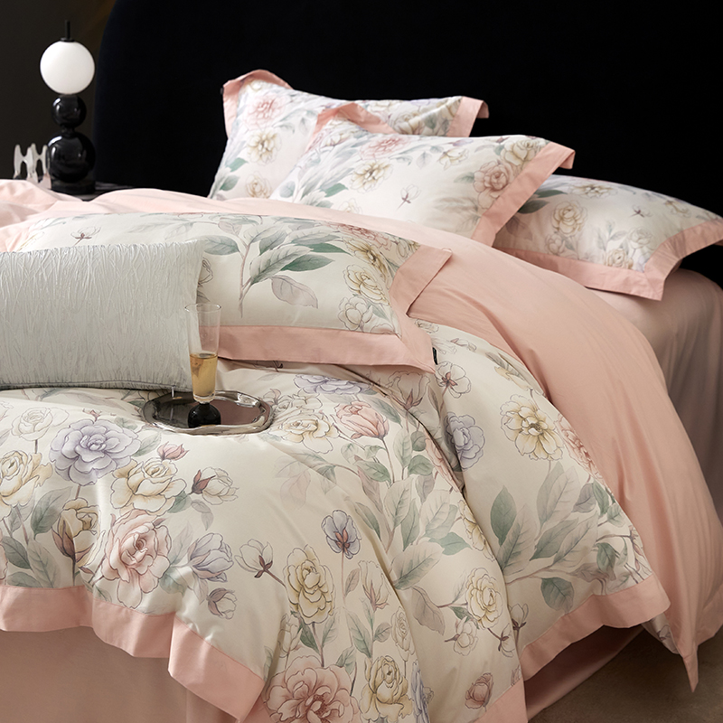 (总)薏思家纺 2025新款全棉纯棉数码印花双宽边磨毛四件套-繁花,春光郁金粉,花茉里-米白,克洛伊粉,克洛伊灰,暮光幽紫,蔷薇之恋,恬觅,温婉粉,舞 绿,心柔-绿,叶伴花香