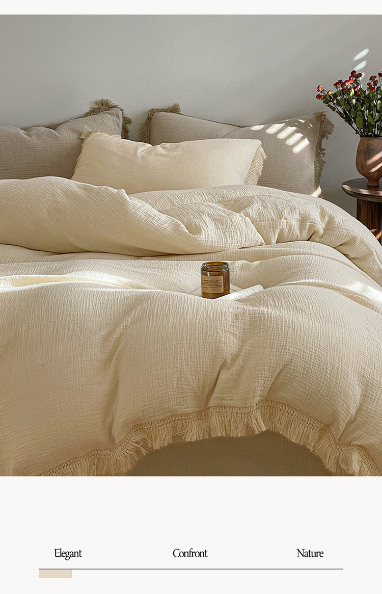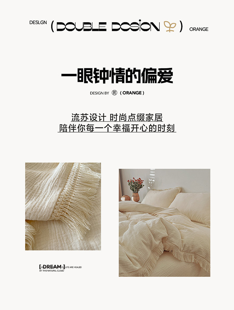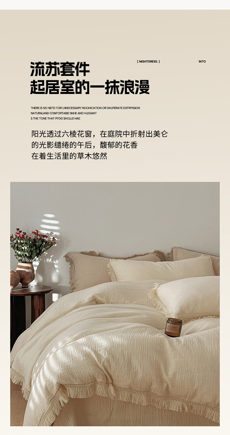 商品名称:2025【A类纯棉皱皱纱流苏四件套】日式无印全棉双层纱皱皱纱良品流苏款四件套床品被套纯色A类件套