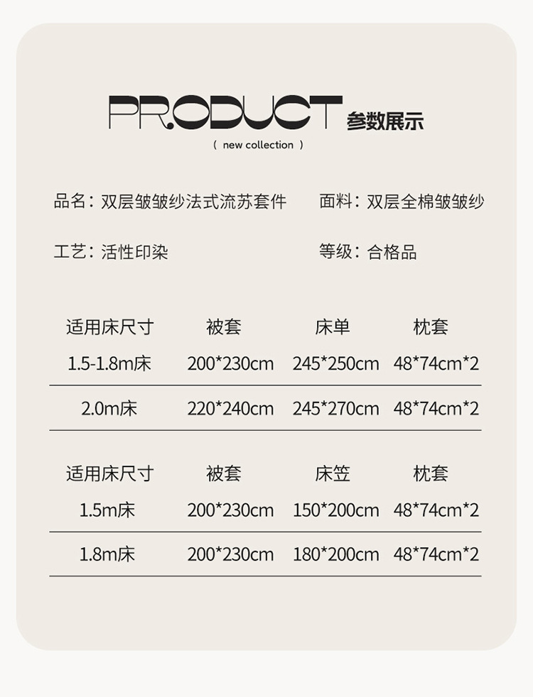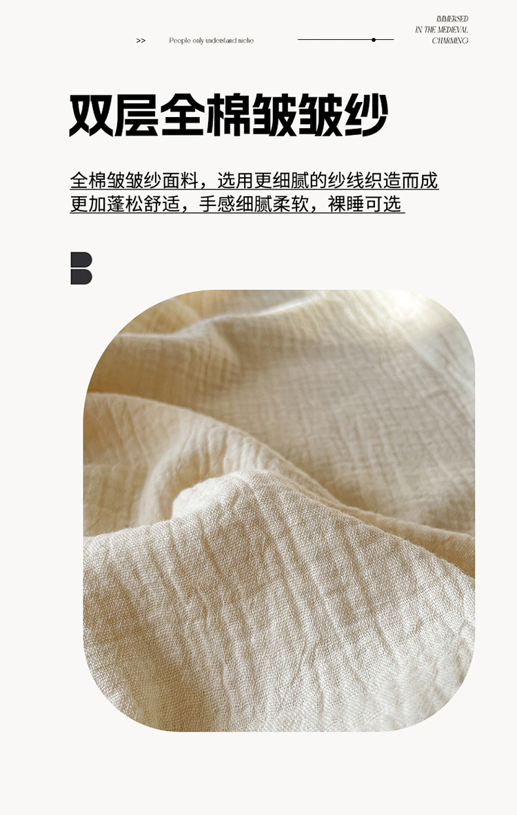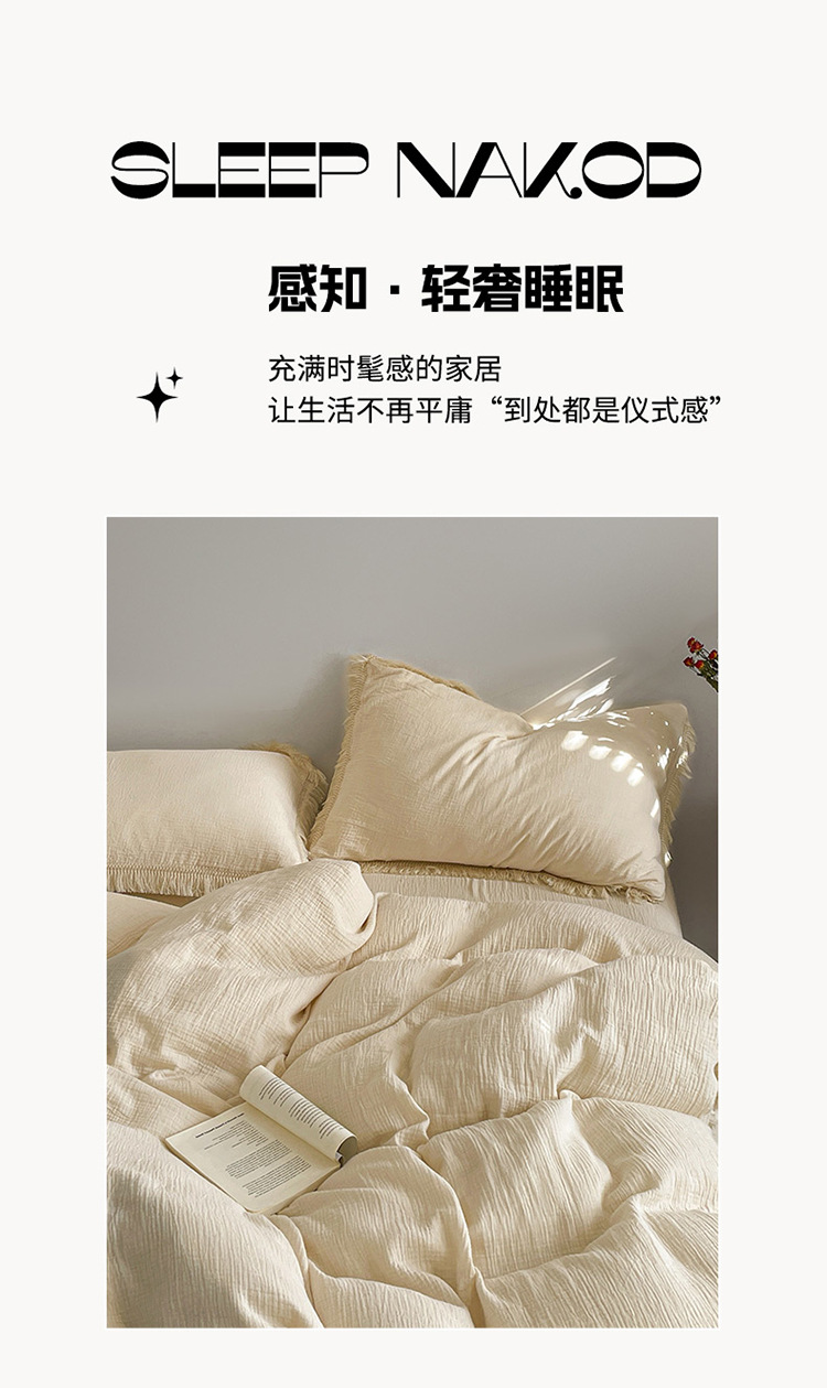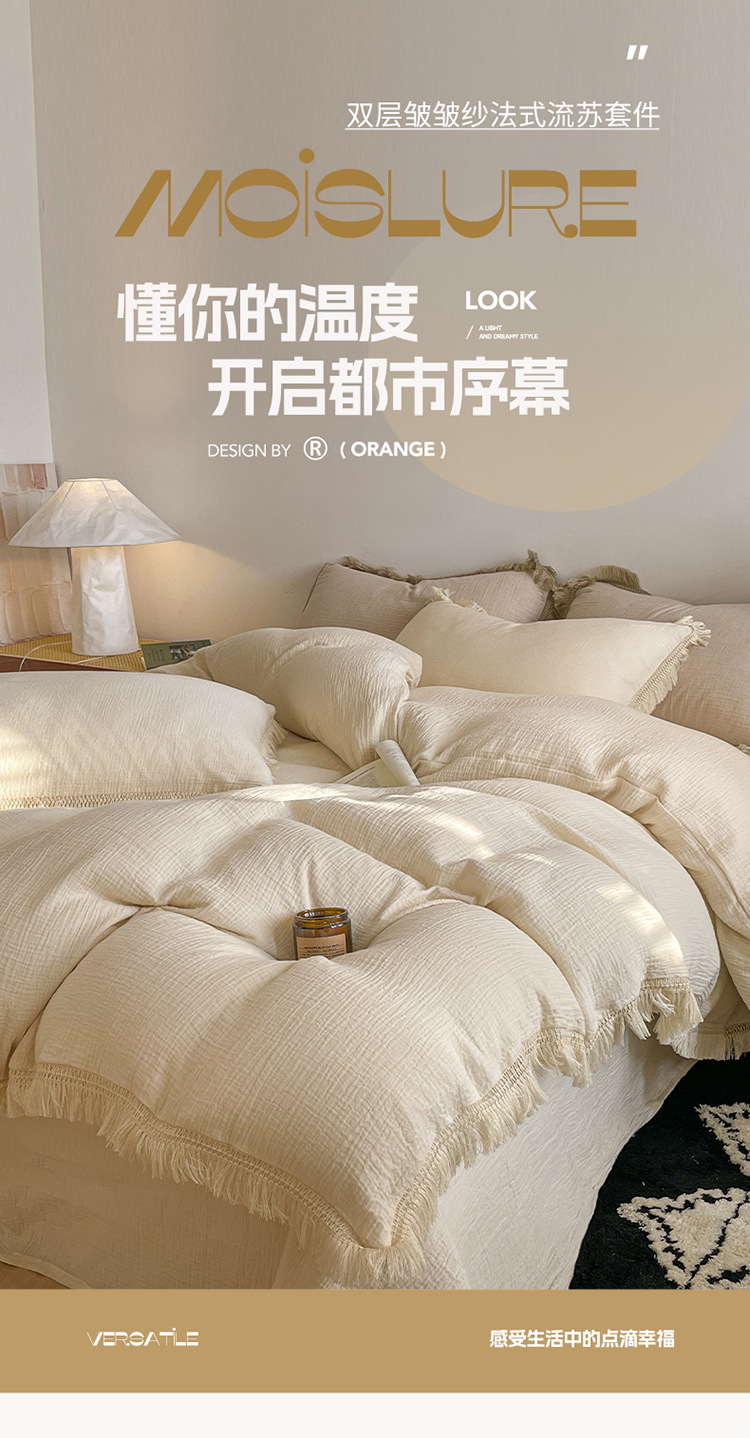 商品名称:2025【A类纯棉皱皱纱流苏四件套】日式无印全棉双层纱皱皱纱良品流苏款四件套床品被套纯色A类件套