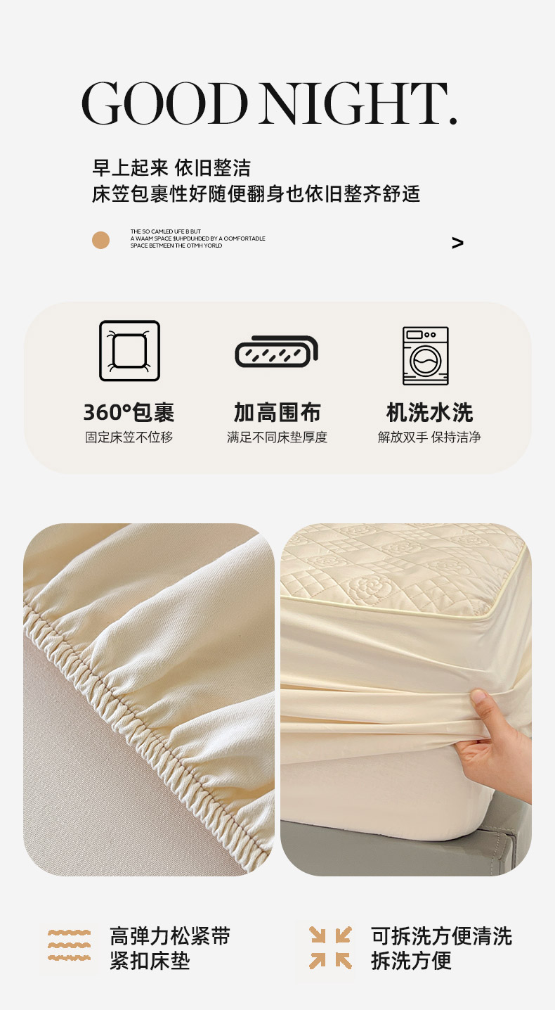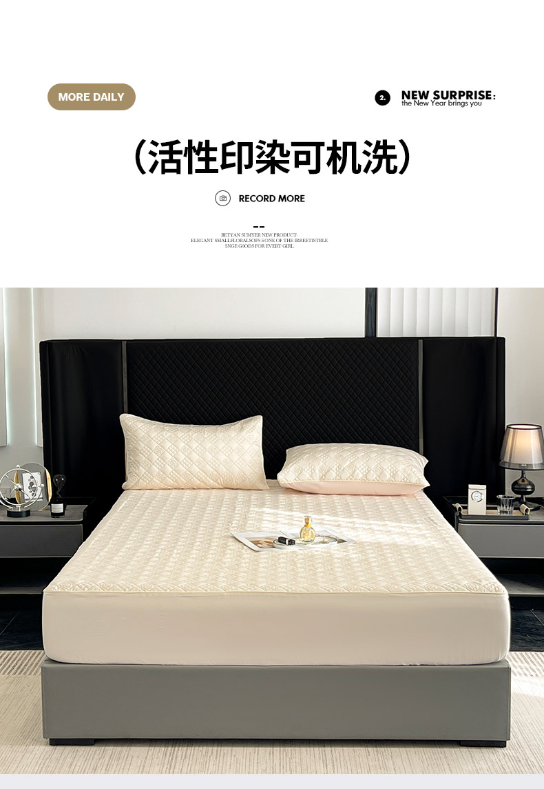 商品名称:2025A类母婴级长绒棉夹棉床笠三件套纯棉全棉加厚席梦思床罩床套四季款保护罩 奶玉