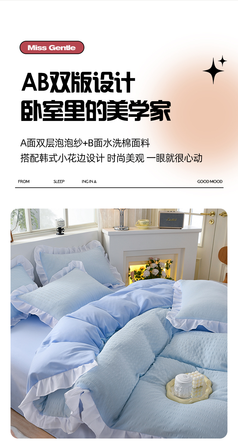 (总)易展家居 2025新款韩版花边水洗棉四件套