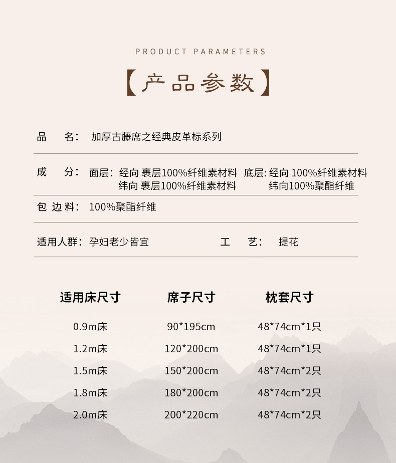 当前位置: 91家纺网 > 商品网购 > 床上用品 > 凉席 > 藤席 > 小牛席业 2025新款加厚古藤席-经典皮革标系列凉席藤席冰藤席冰丝席竹席草席空调席乳胶席豆豆席 加厚古藤席-经典皮革标(浅蓝)