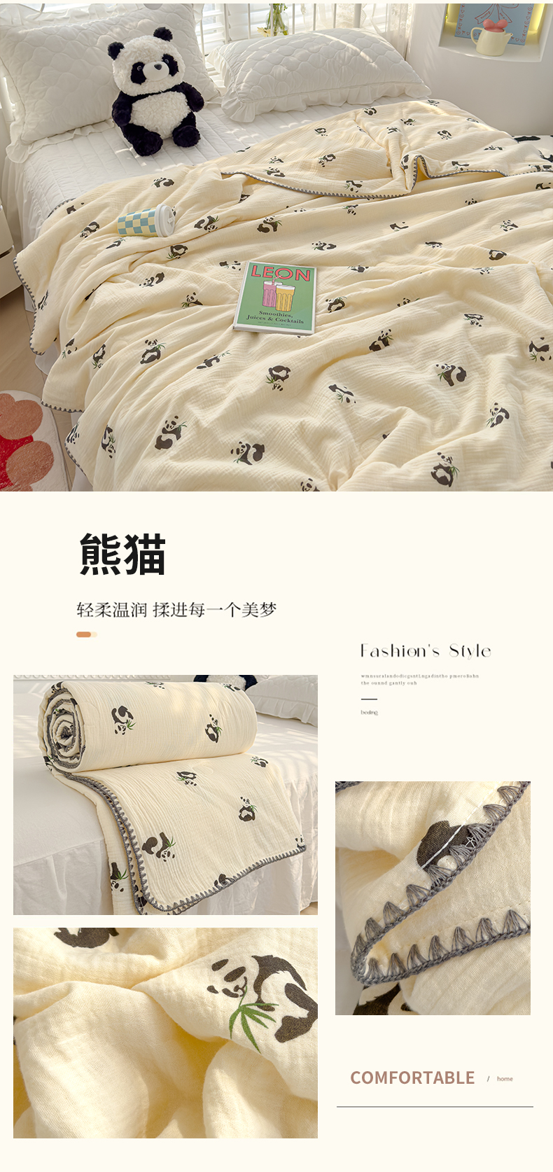 商品名称:芯恋 2025新款母婴级全棉皱皱纱儿童被双层纱夏被 熊猫