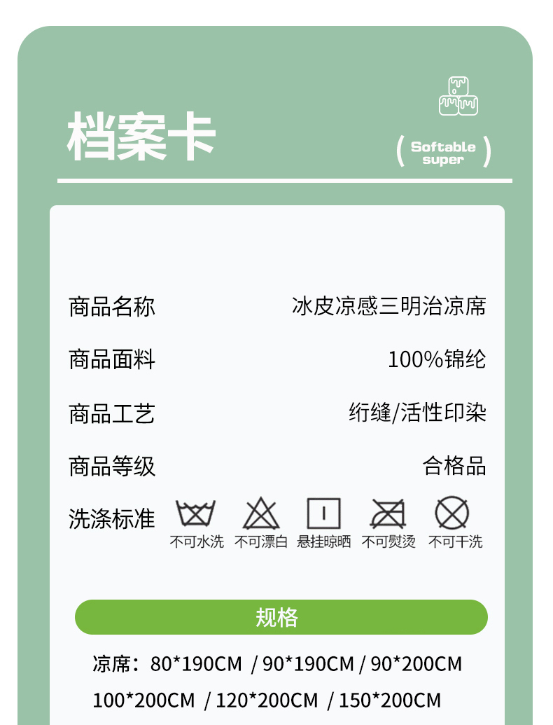 商品名称:(总)凌云家纺 2025年爆款新品100%锦纶冰丝凉感三明治凉席