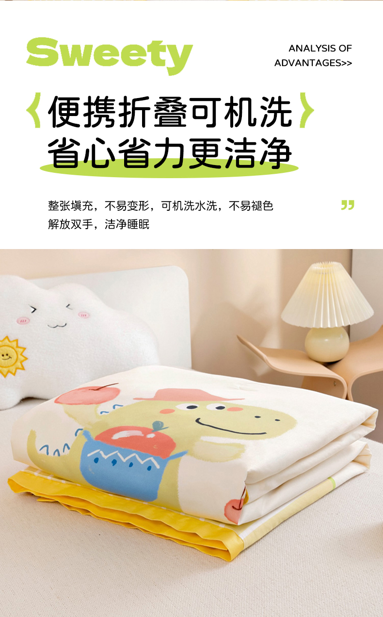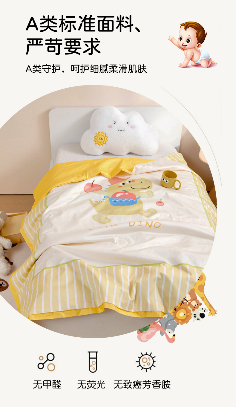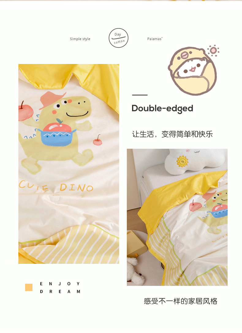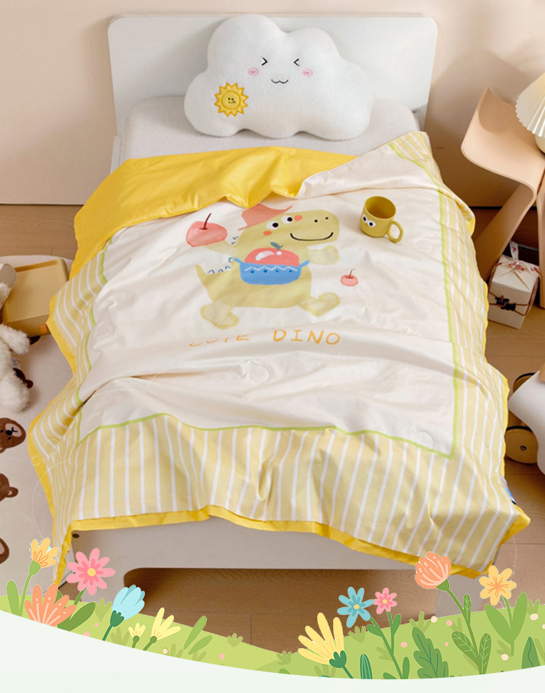 御棉坊 2025新款60长绒棉数码印花夏被夏凉被空调被 苹果恐龙