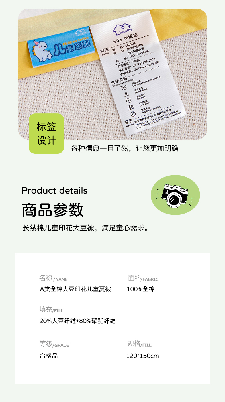 商品名称:御棉坊 2025新款60长绒棉数码印花夏被夏凉被空调被 苹果恐龙