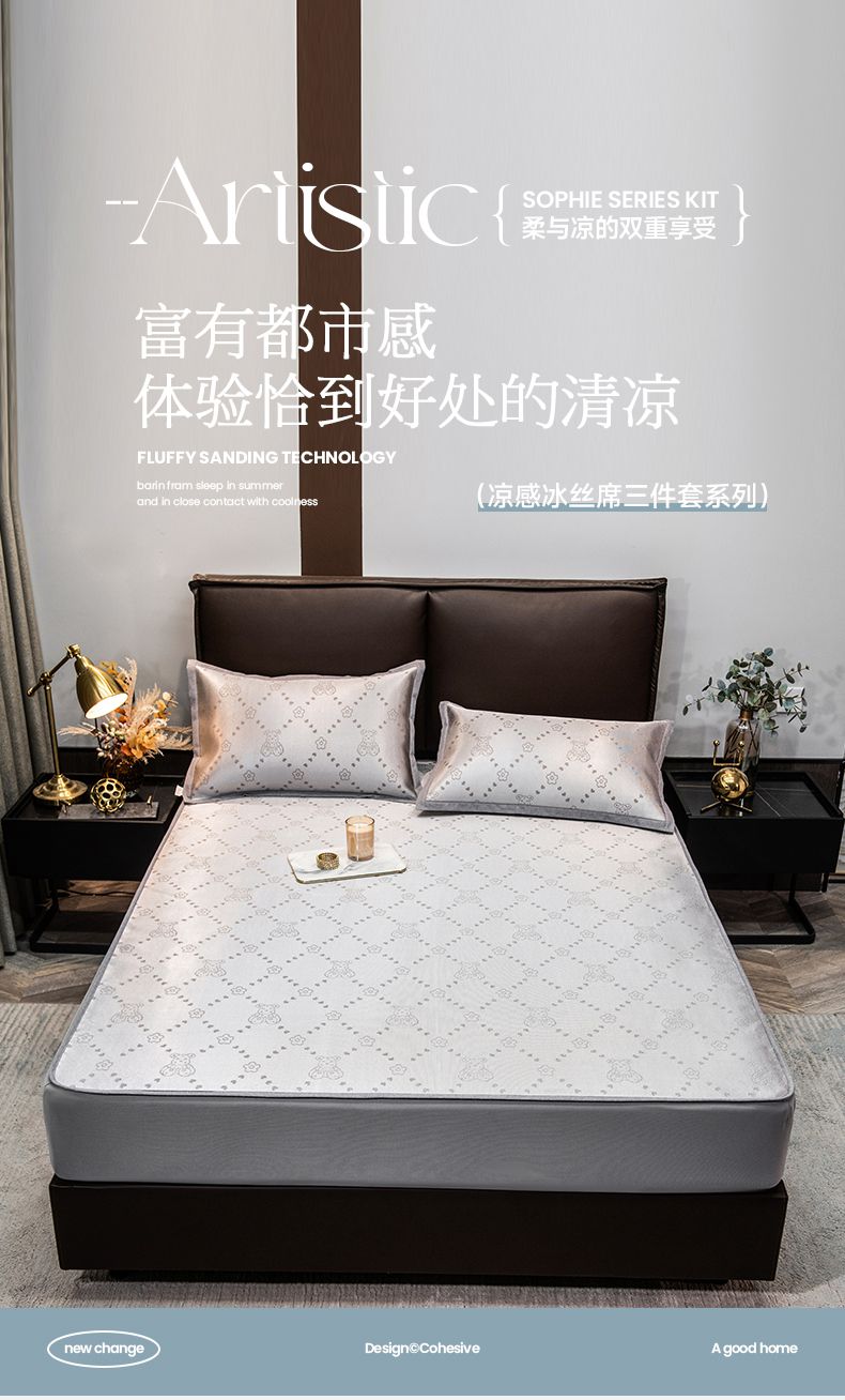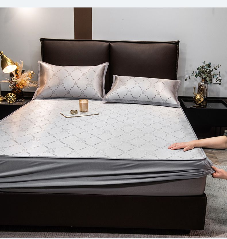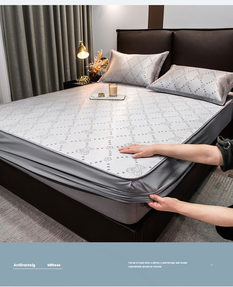 摩妮卡 2025新款高精密粗冰丝席床笠款三件套 贝贝熊-琥珀银