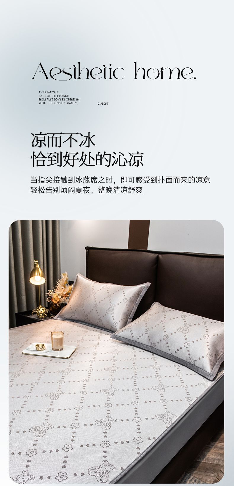 商品名称:摩妮卡 2025新款高精密粗冰丝席床笠款三件套 贝贝熊-琥珀银