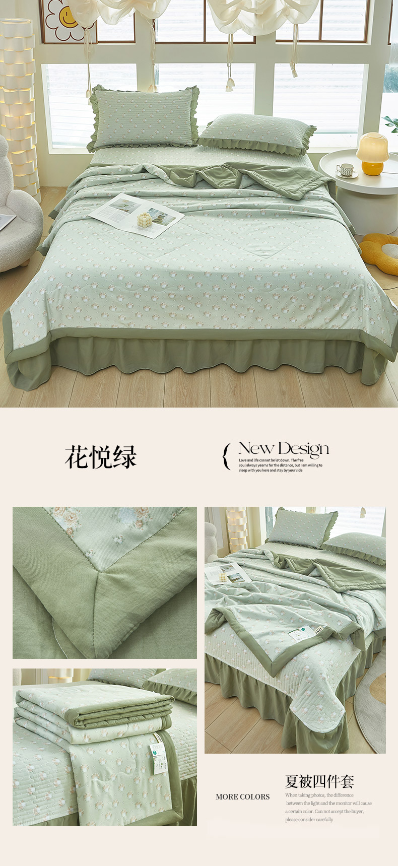 当前位置: 91家纺网 > 商品网购 > 床品套件 > 四件套 > 其它四件套 > 美之润家纺2025新款针织夏被床盖印花四件套 花悦绿