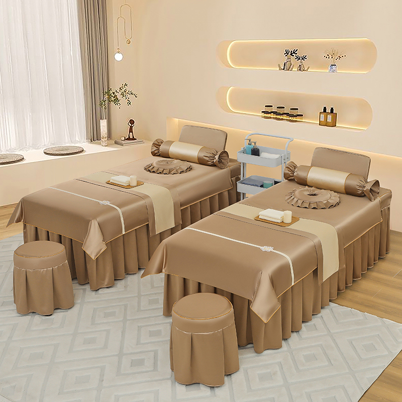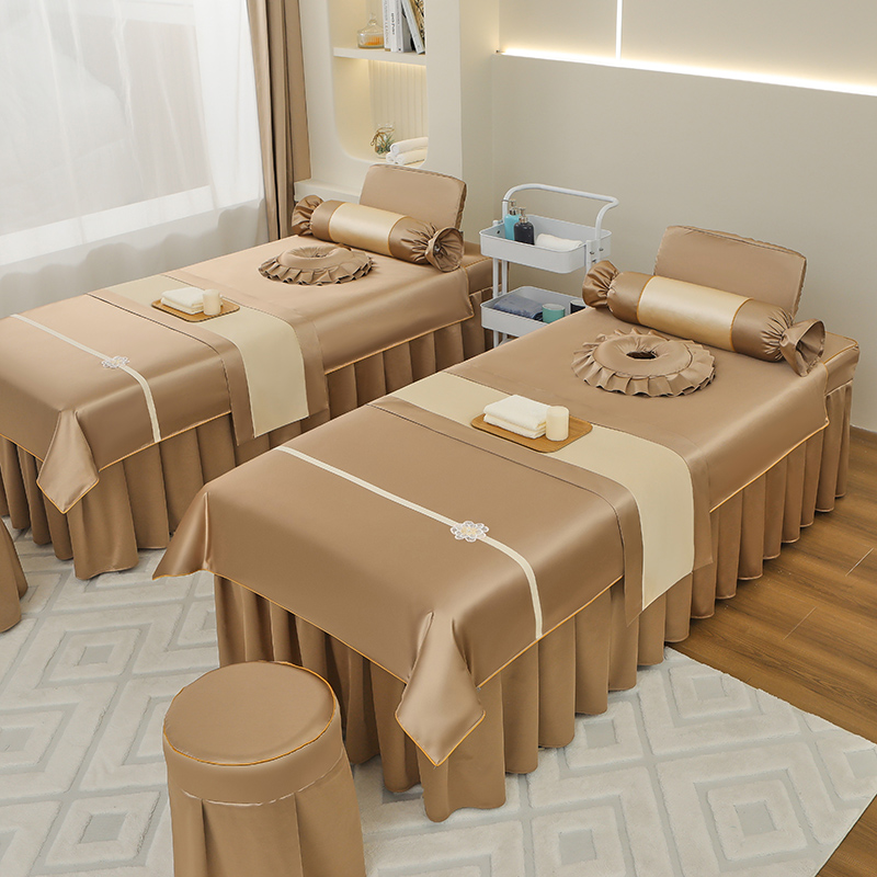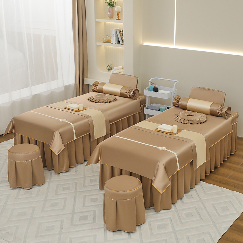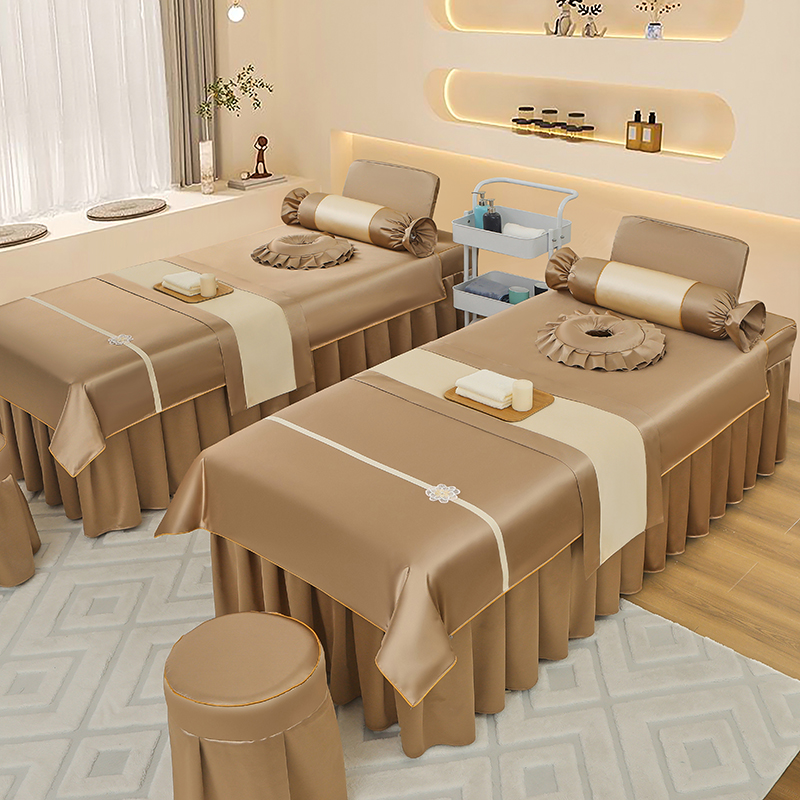 (总)芙怡 2025春夏新款8031款棉麻美容床罩四件套-未央系列,未央-蝶翅蓝,未央-格调 灰,未央-蜜桃 粉,未央-浅咖,未央-浅驼,未央-斑斓绿
