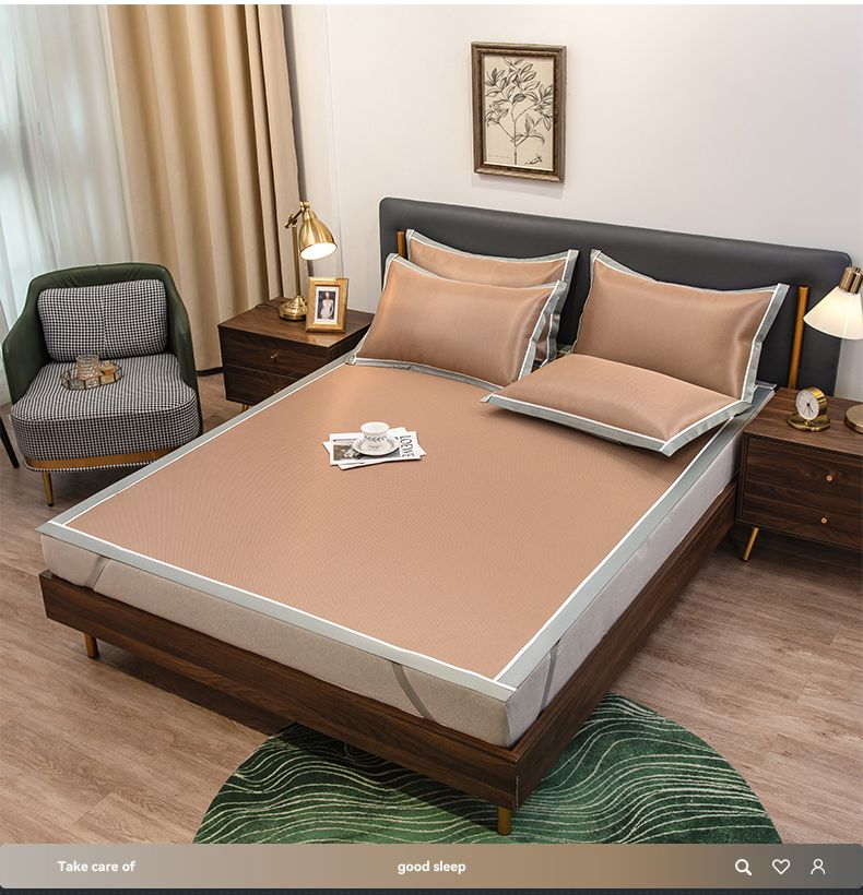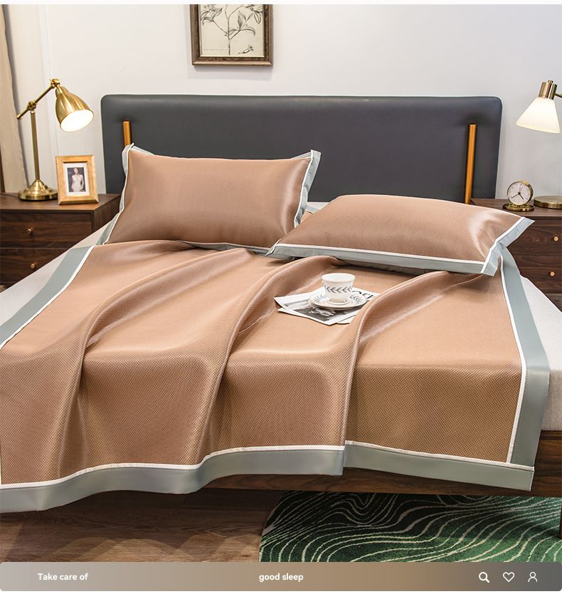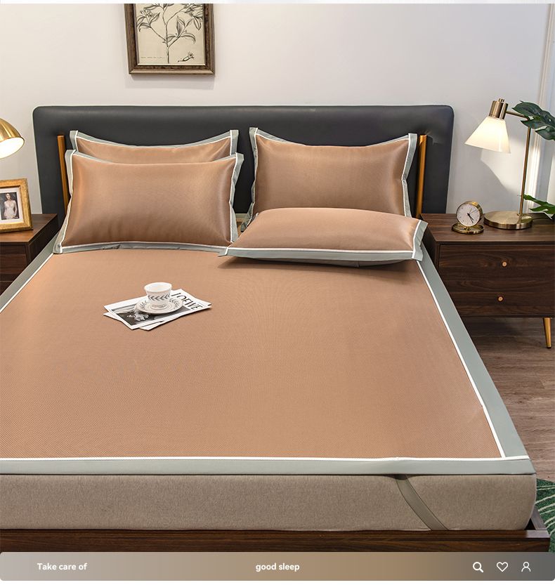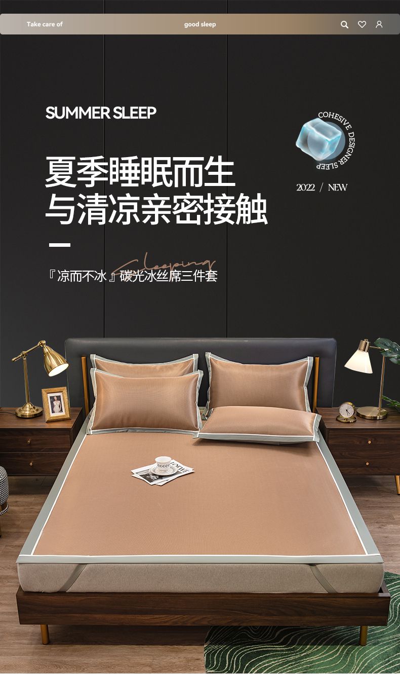 摩妮卡 2025新款碳光席床席款三件套可洗冰丝席 裸肤咖