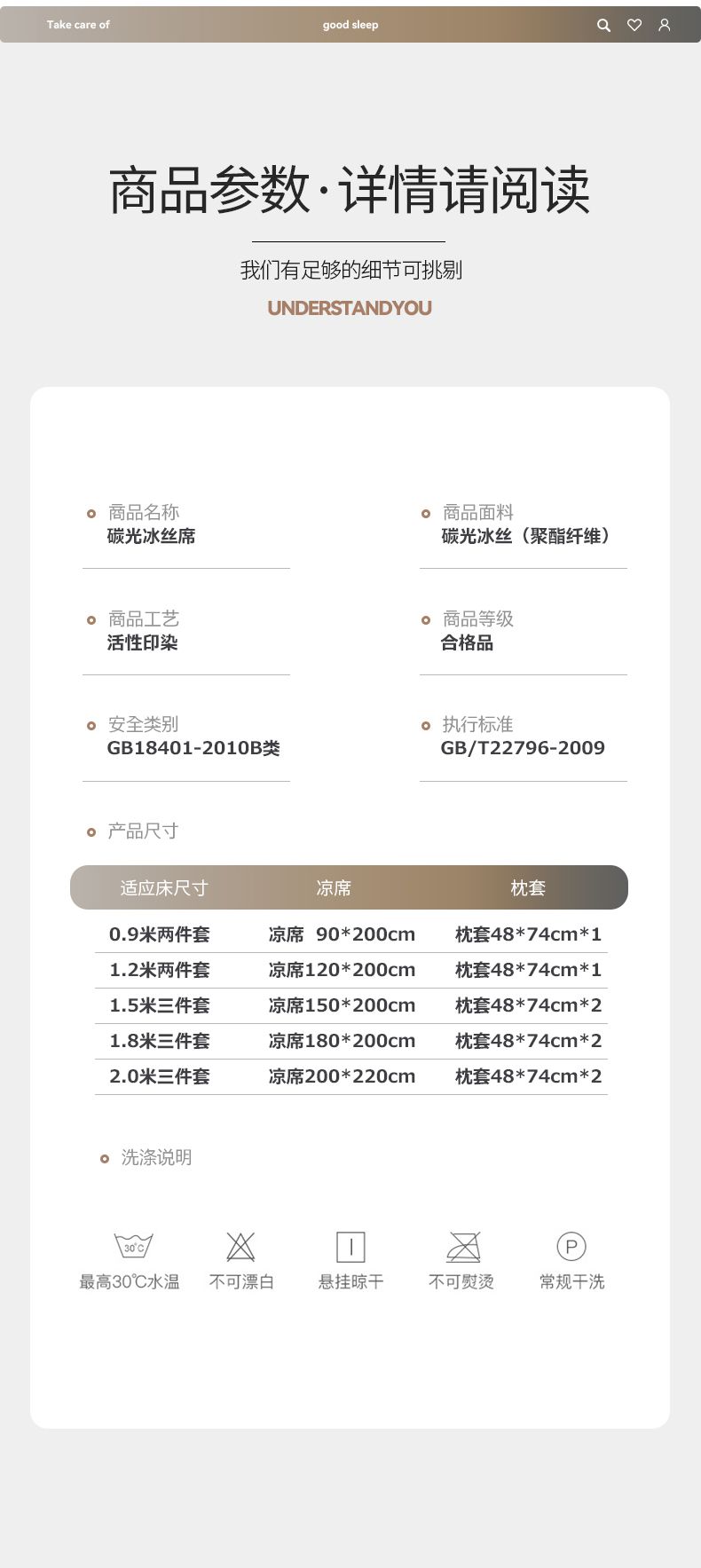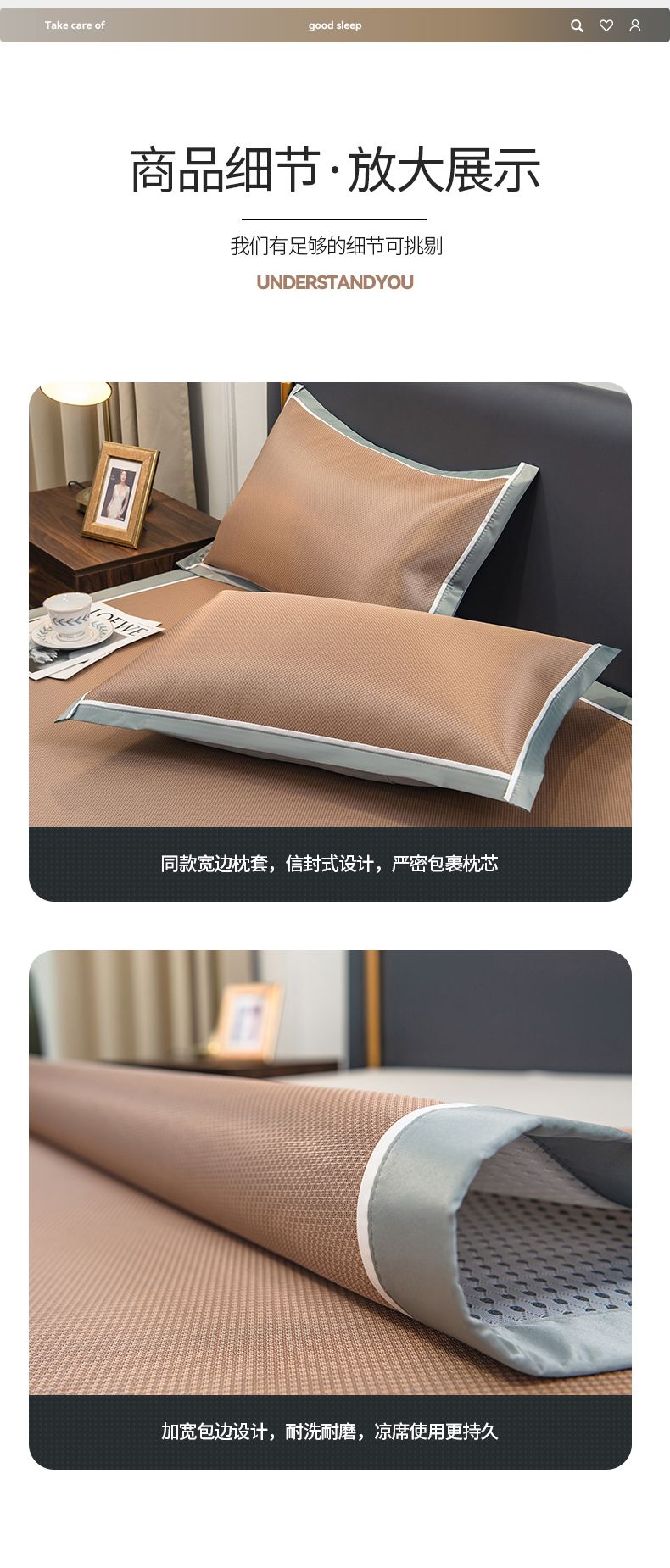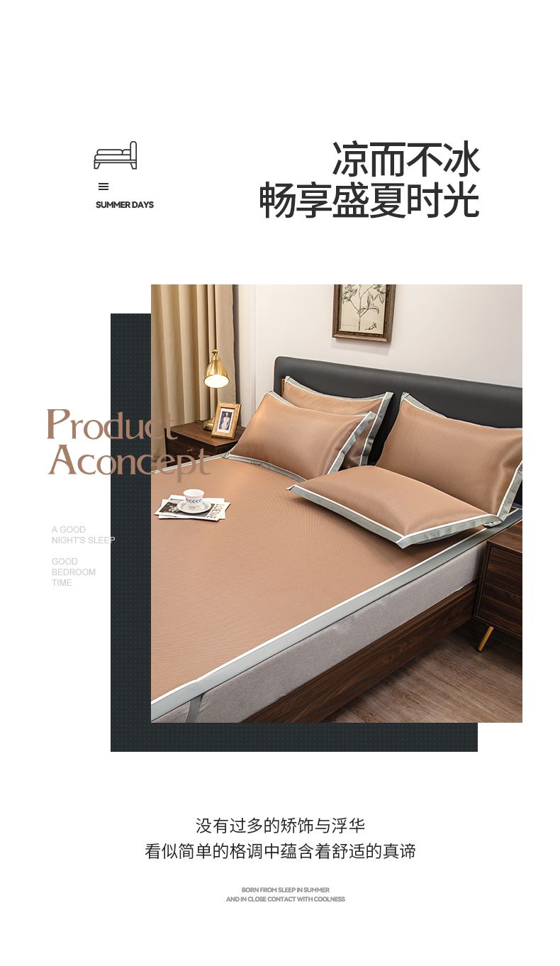 商品名称:摩妮卡 2025新款碳光席床席款三件套可洗冰丝席 裸肤咖