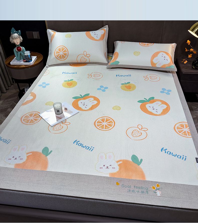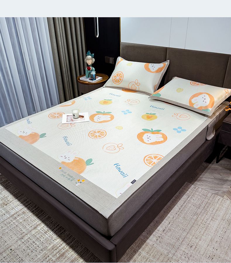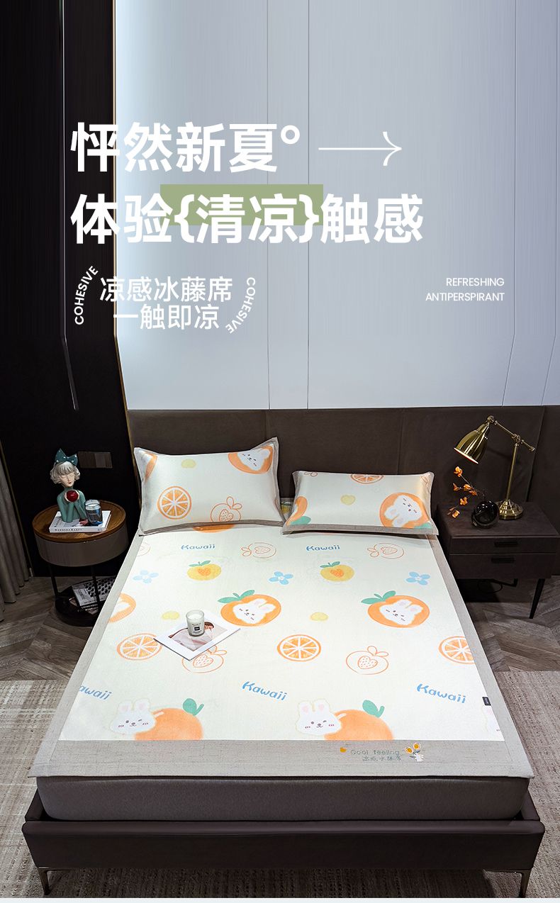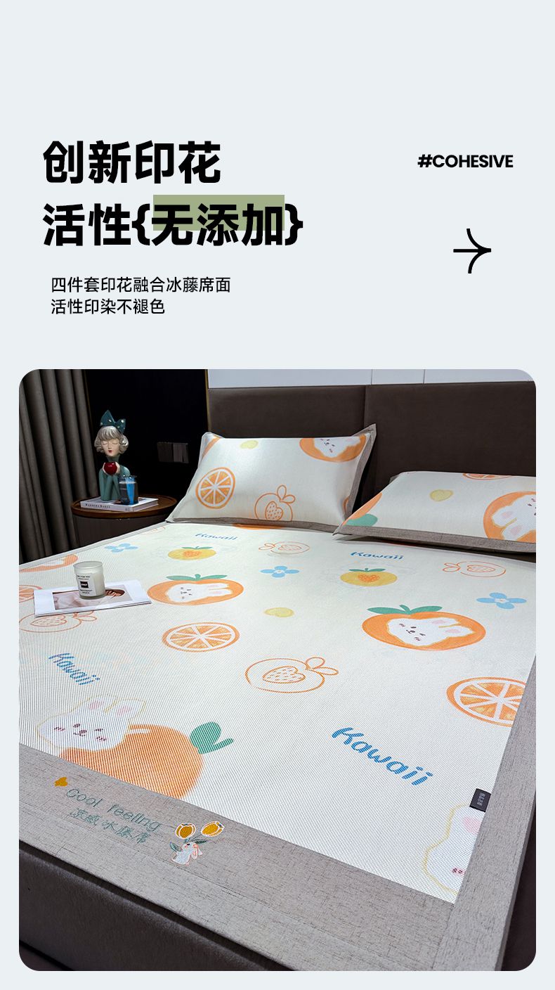 商品名称:摩妮卡 2025新款数码印花冰藤席床席款三件套 果粒橙
