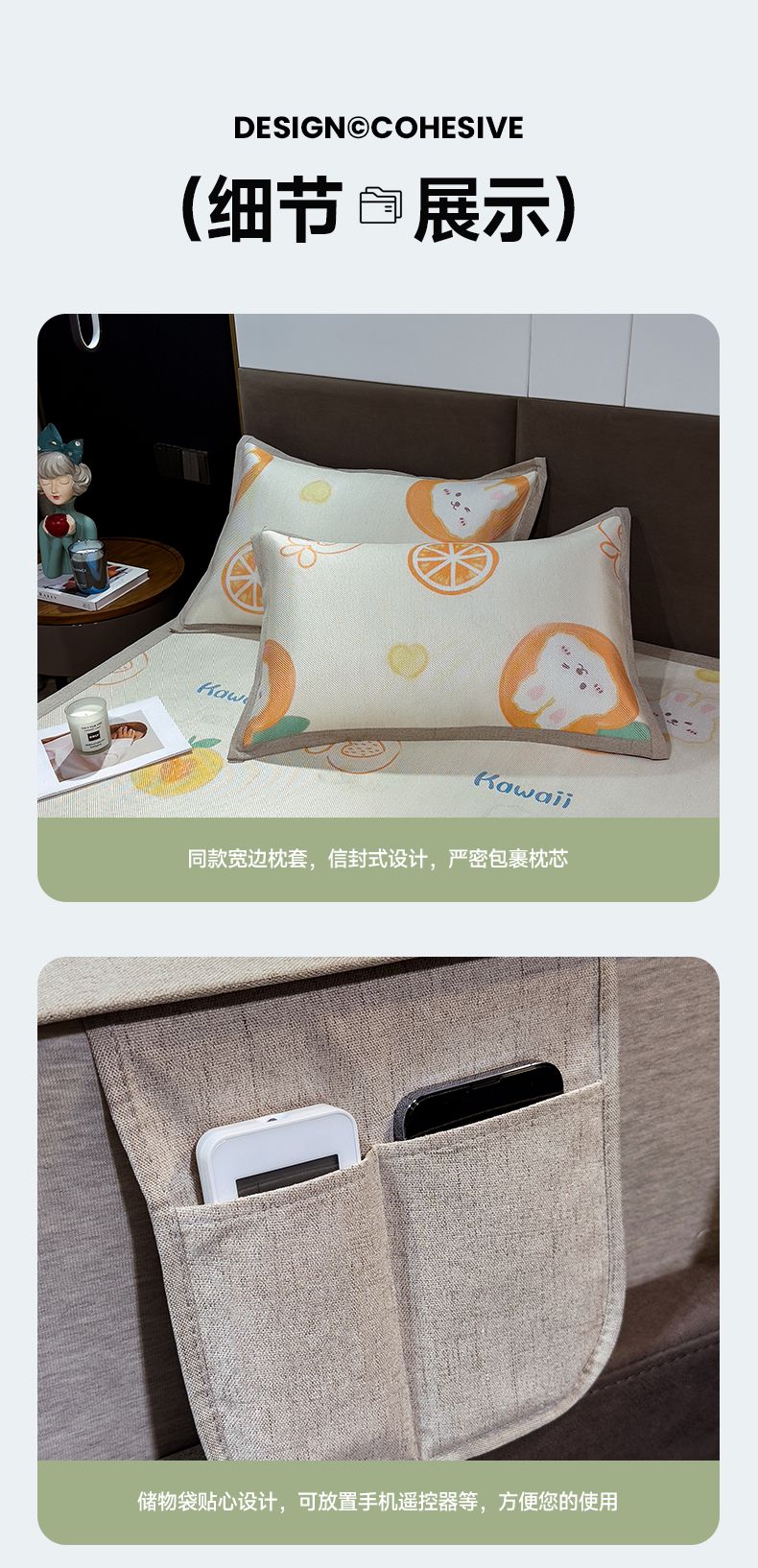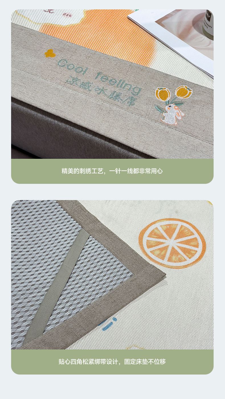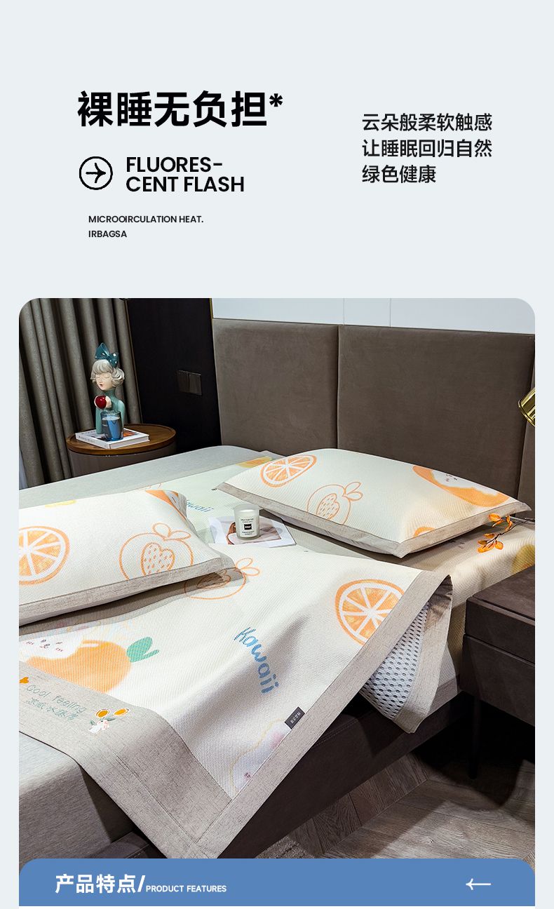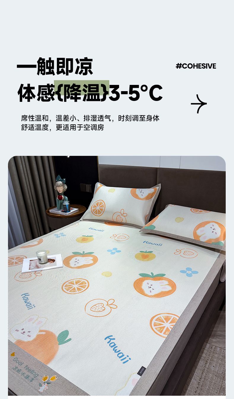 商品名称:摩妮卡 2025新款数码印花冰藤席床席款三件套 果粒橙