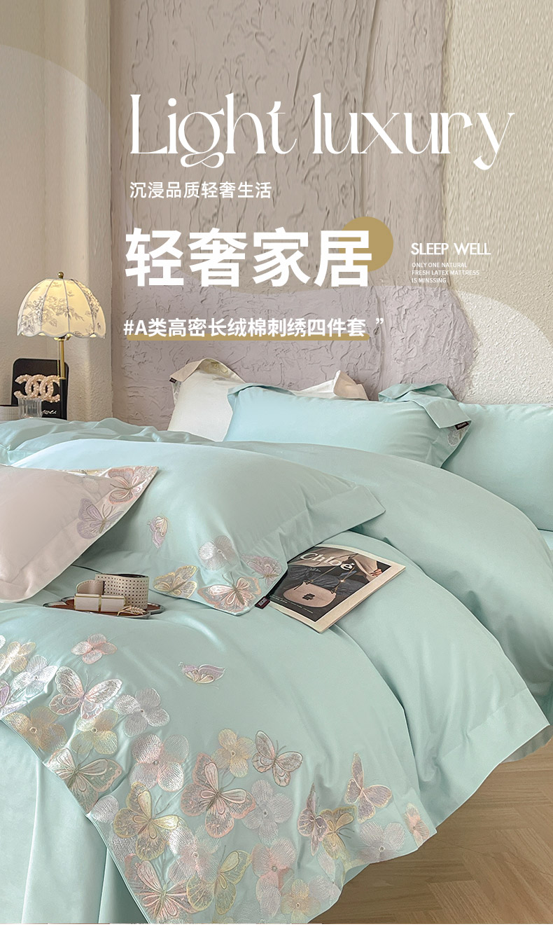 (总) 2025春夏长绒棉四件套纯棉全棉轻奢风床单被套重工刺绣床上用品,芊羽梦-白粉,芊羽梦-茶绿,芊羽梦-黛紫,芊羽梦-慕蓝,芊羽梦-颜粉