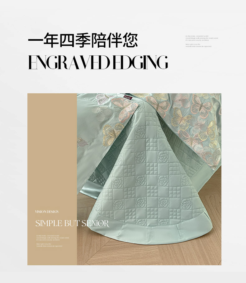 (总)2025新款A类100支长绒棉夹棉床盖三件套全棉纯棉加厚绗绣床单四季款床上用品,茶绿,黛紫,慕蓝,奶玉,颜粉