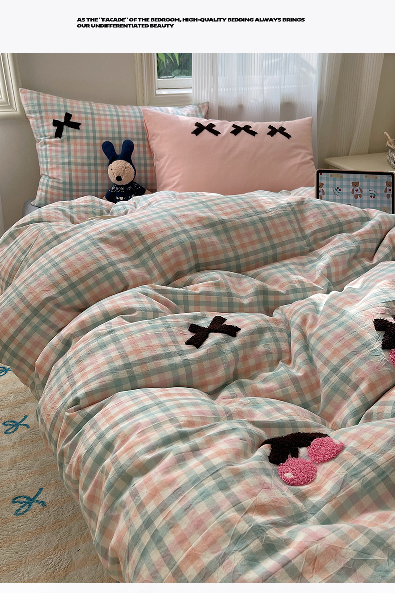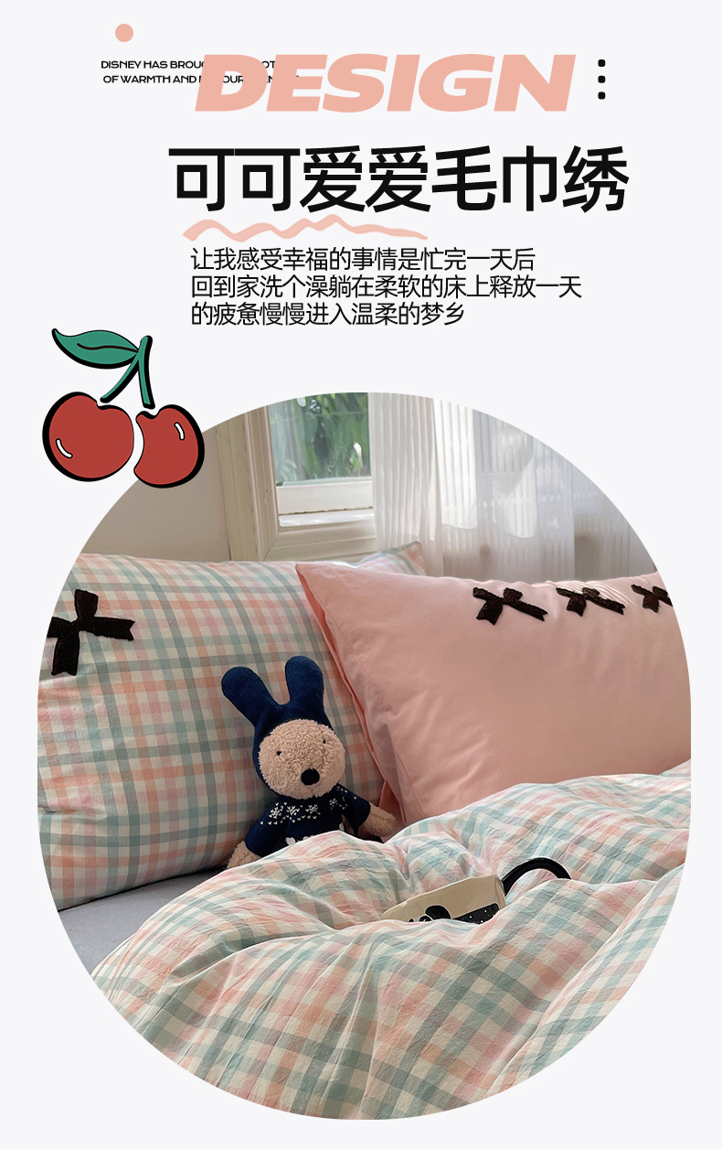 (总)北欧良品 2025新款A类色织水洗棉毛巾绣蝴蝶结少女系列四件套,蝴蝶结-冰淇淋格+蓝粉,蝴蝶结-粉黄小格+粉黄,蝴蝶结-黑白小格+粉粉,蝴蝶结-蓝黄小格+蓝黄,蝴蝶结-奶油格粉+粉黄,蝴蝶结-奶油格蓝+蓝黄,蝴蝶结-奶油格绿+绿黄,蝴蝶结-奶油格米+紫紫,蝴蝶结-紫粉小格+紫紫