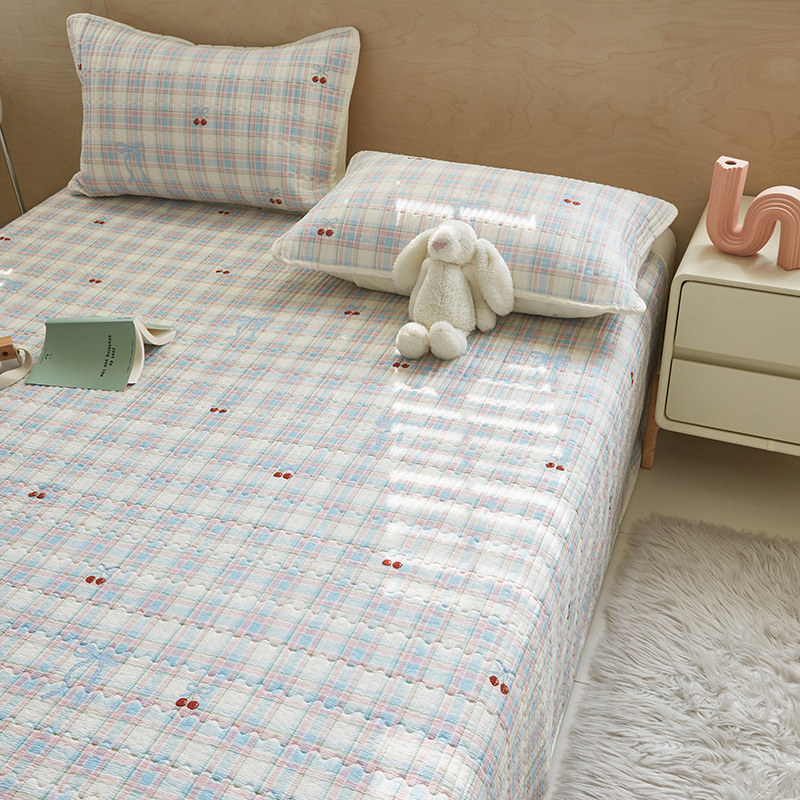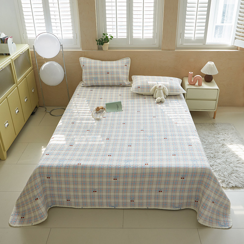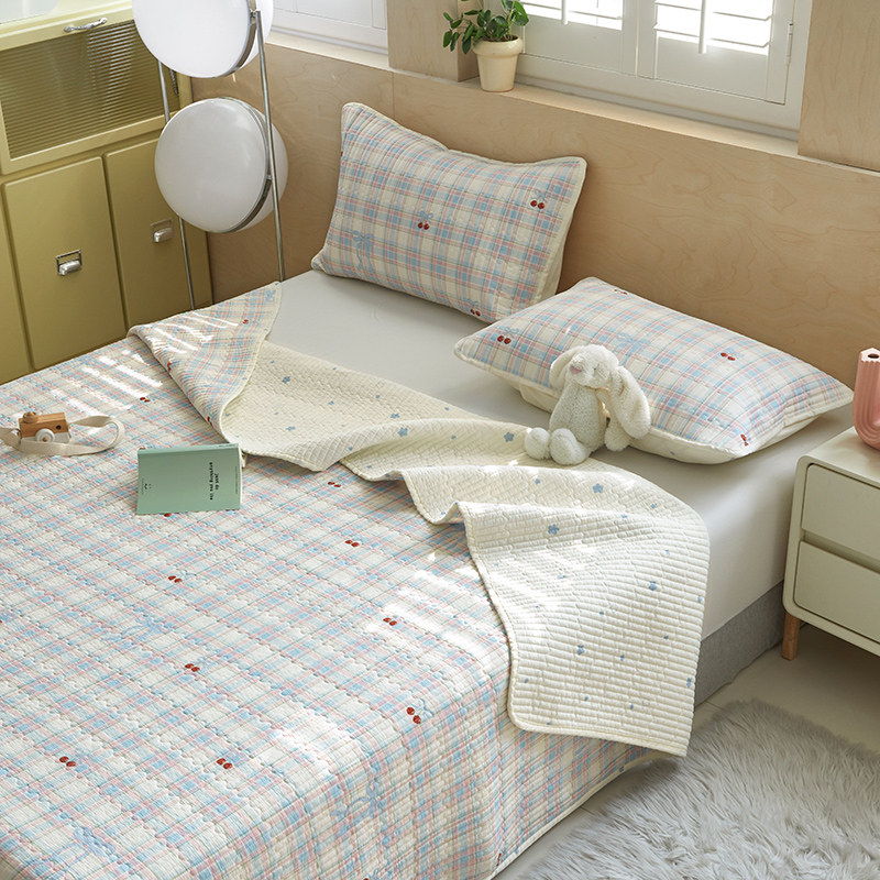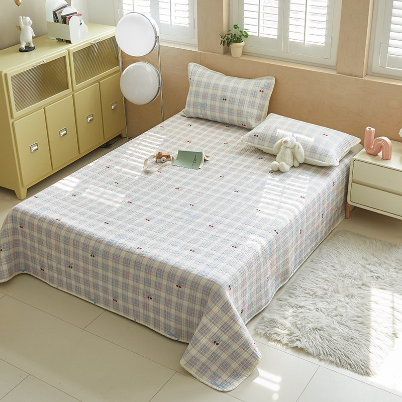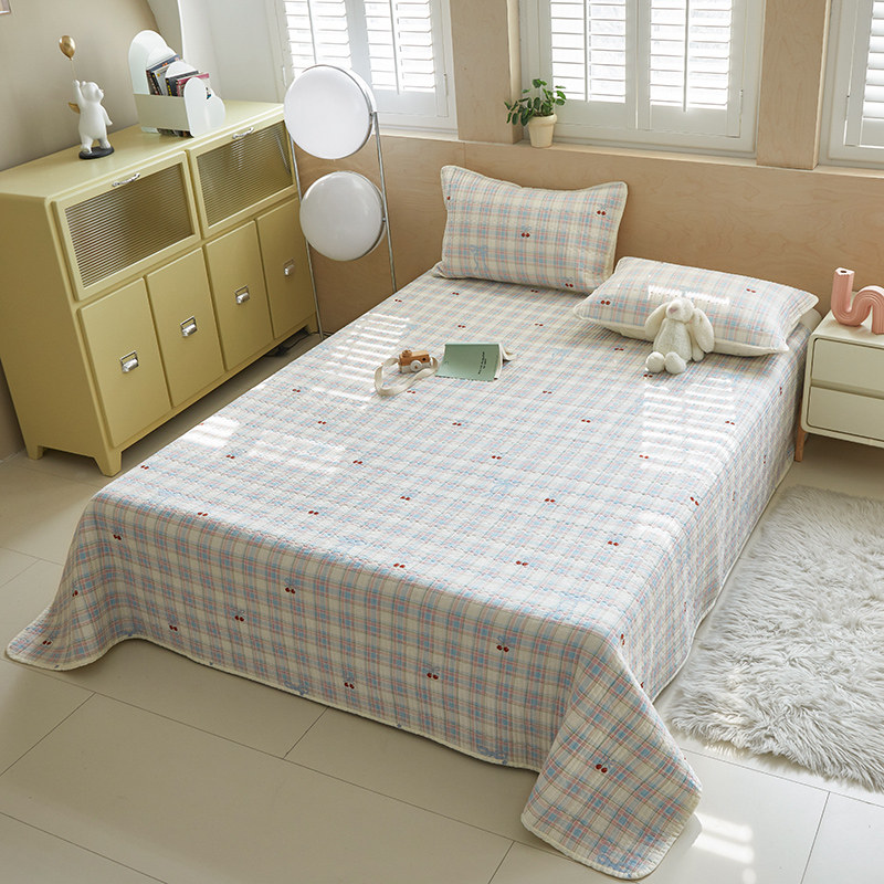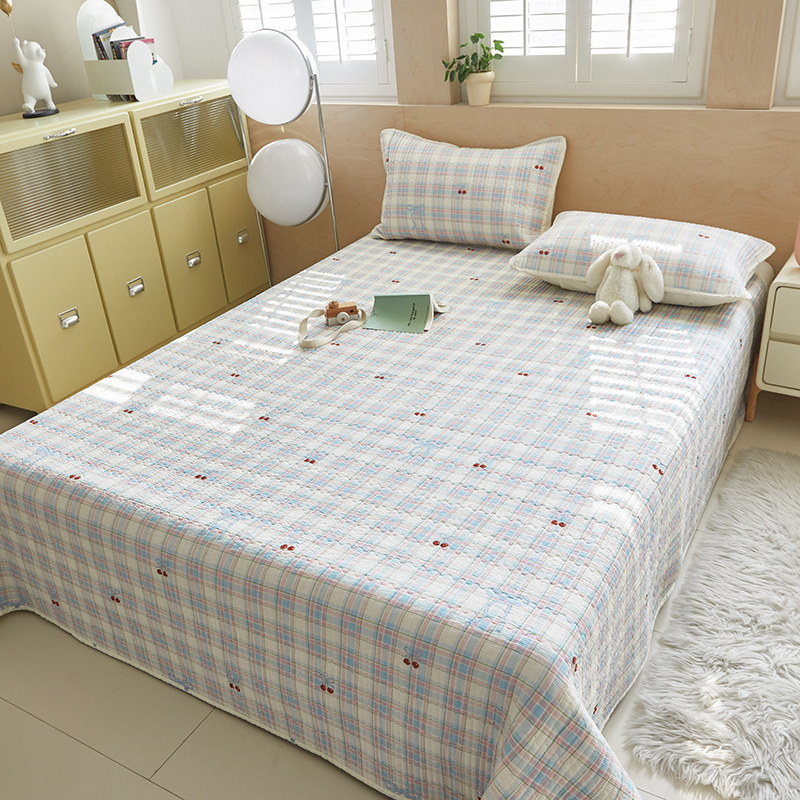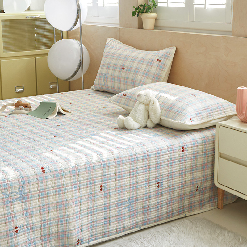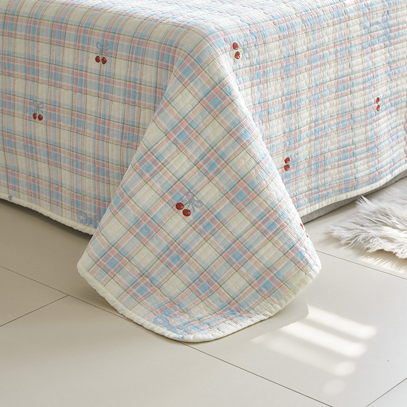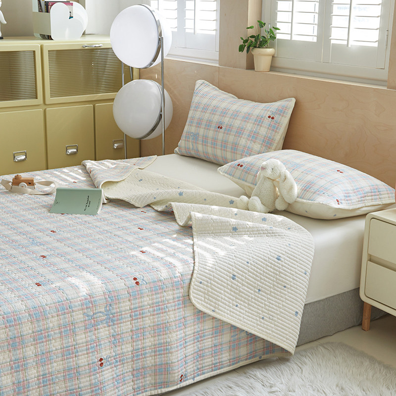 舒居家纺 2025新款双面全棉酵素砂洗床盖 樱桃格子