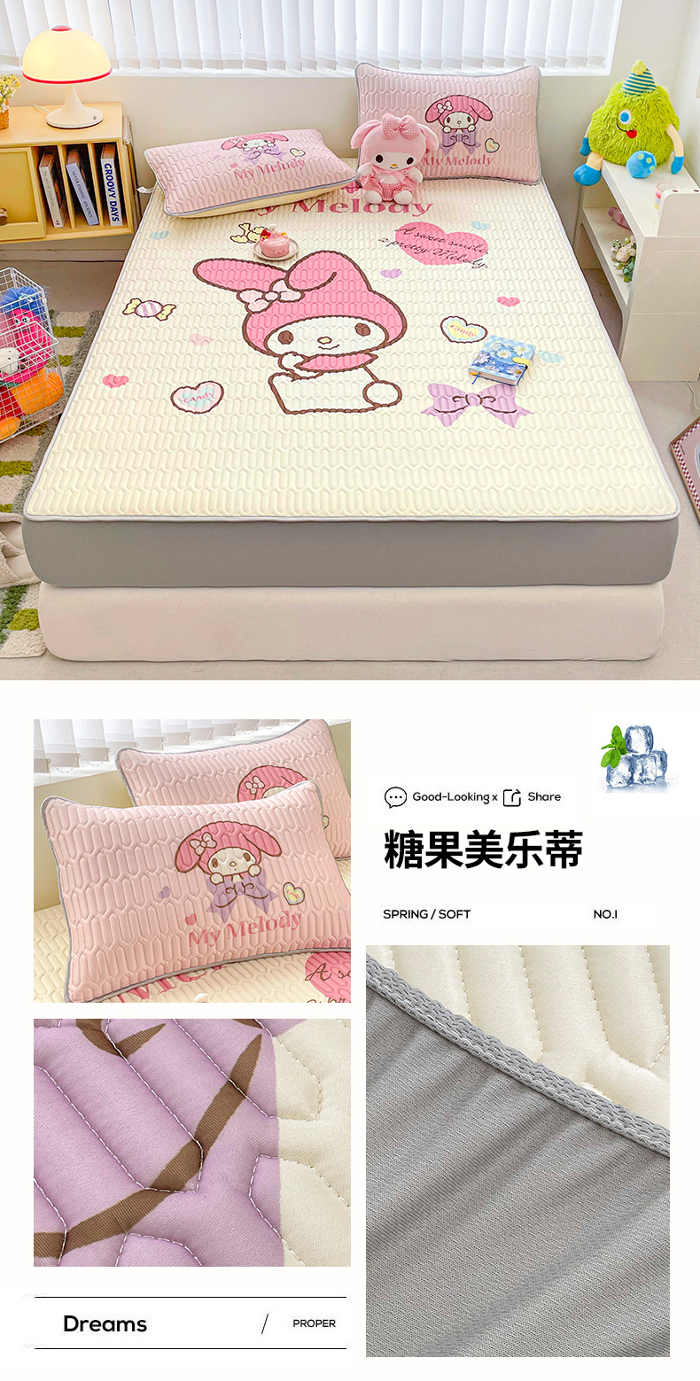 (总)米帛家纺 2025新款大版三丽鸥碳光冰丝凉席床笠款,圆点酷洛米,彩虹帕恰狗,彩虹玉桂狗,草莓美乐蒂,窗帘美乐蒂,粉色酷洛米,皇冠玉桂狗,木马美乐蒂,气球玉桂狗,巧克力酷洛米,糖果美乐蒂,糖果玉桂狗,香水凯蒂猫,樱桃凯蒂猫,樱桃酷洛米