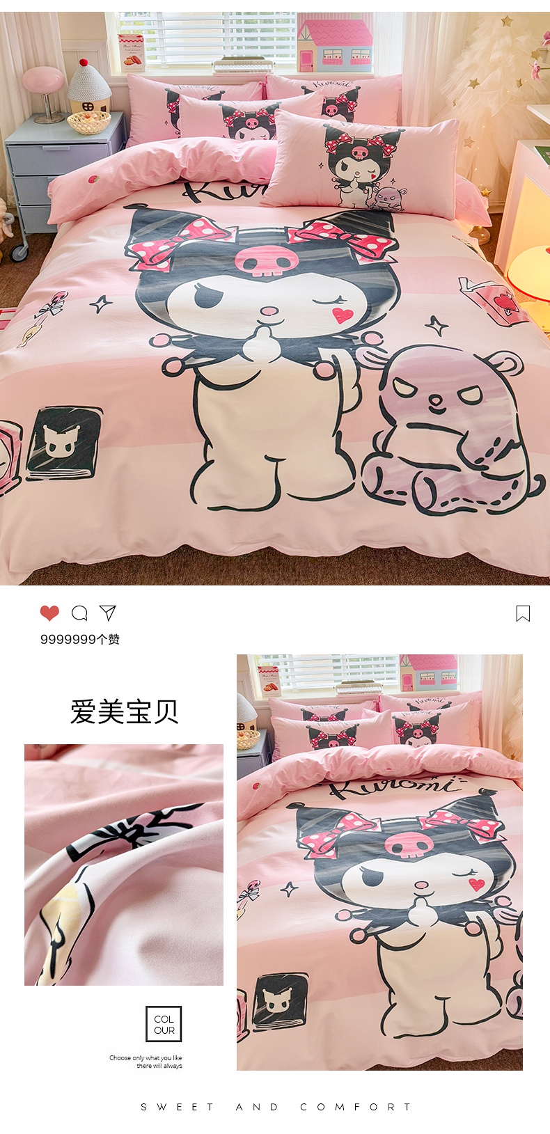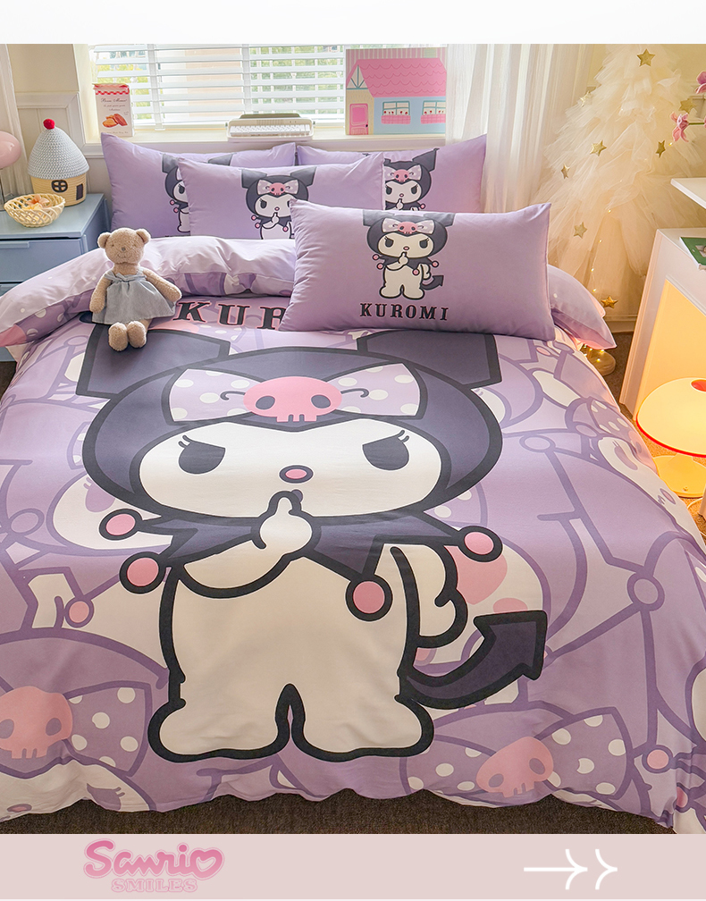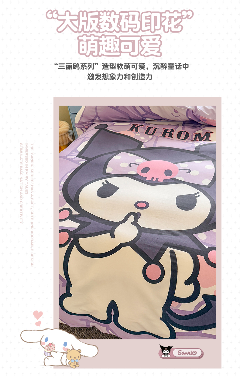 当前位置: 91家纺网 > 商品网购 > 床品套件 > 四件套 > 全棉普通四件套 > 2025新款大版三丽鸥全棉数码印花四件套【含防伪标】 百变库洛米