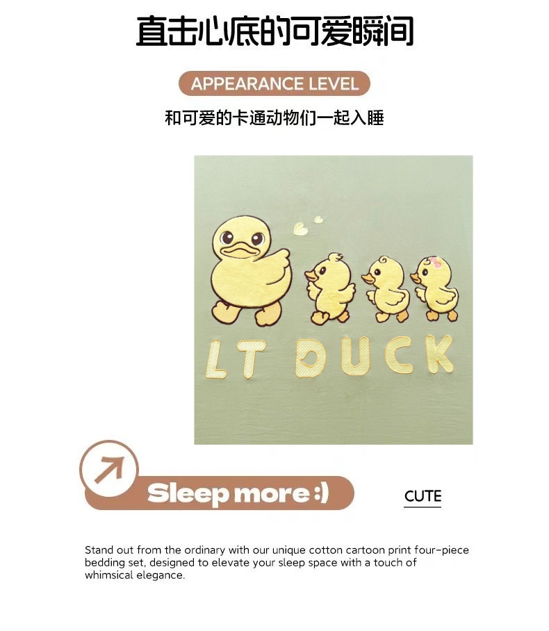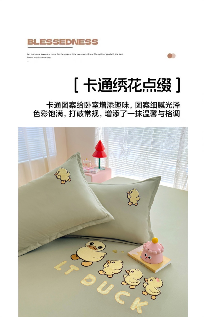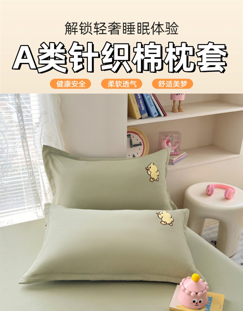 商品名称:圣比熊 2025新款贴布绣针织棉双层纱枕套 旅行鸭-豆绿