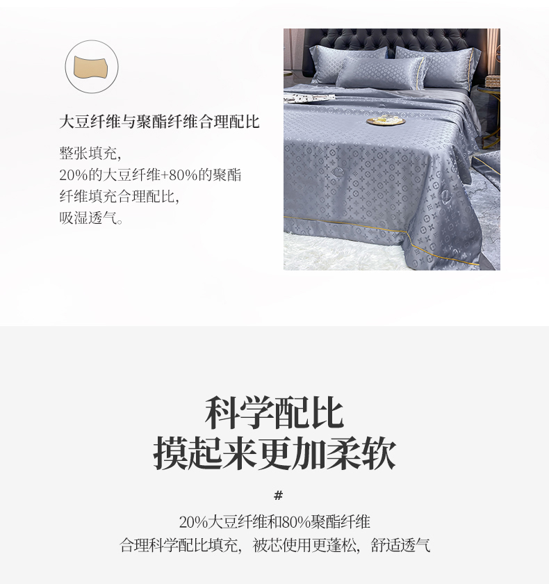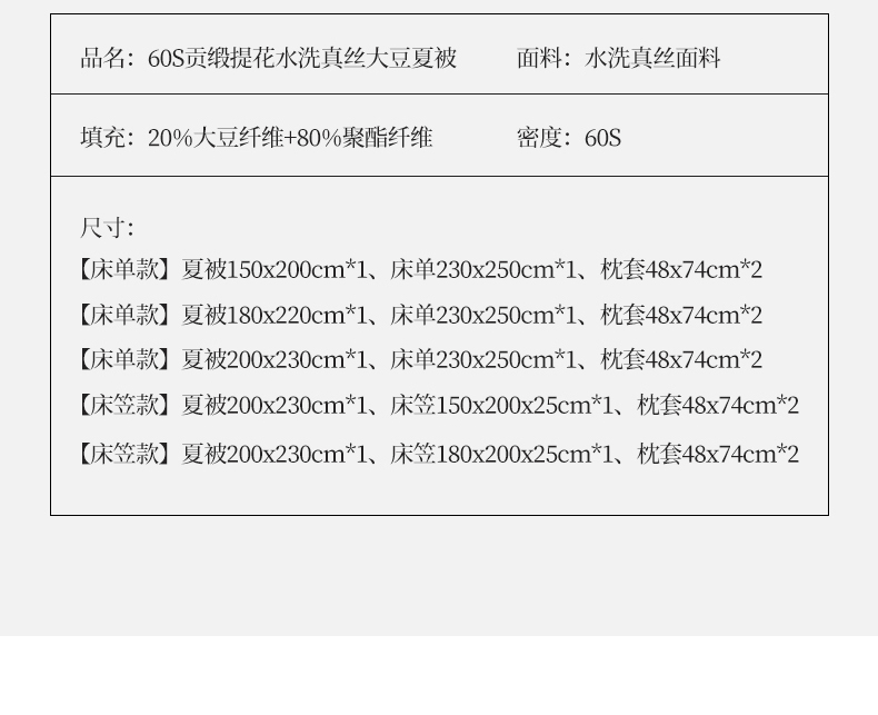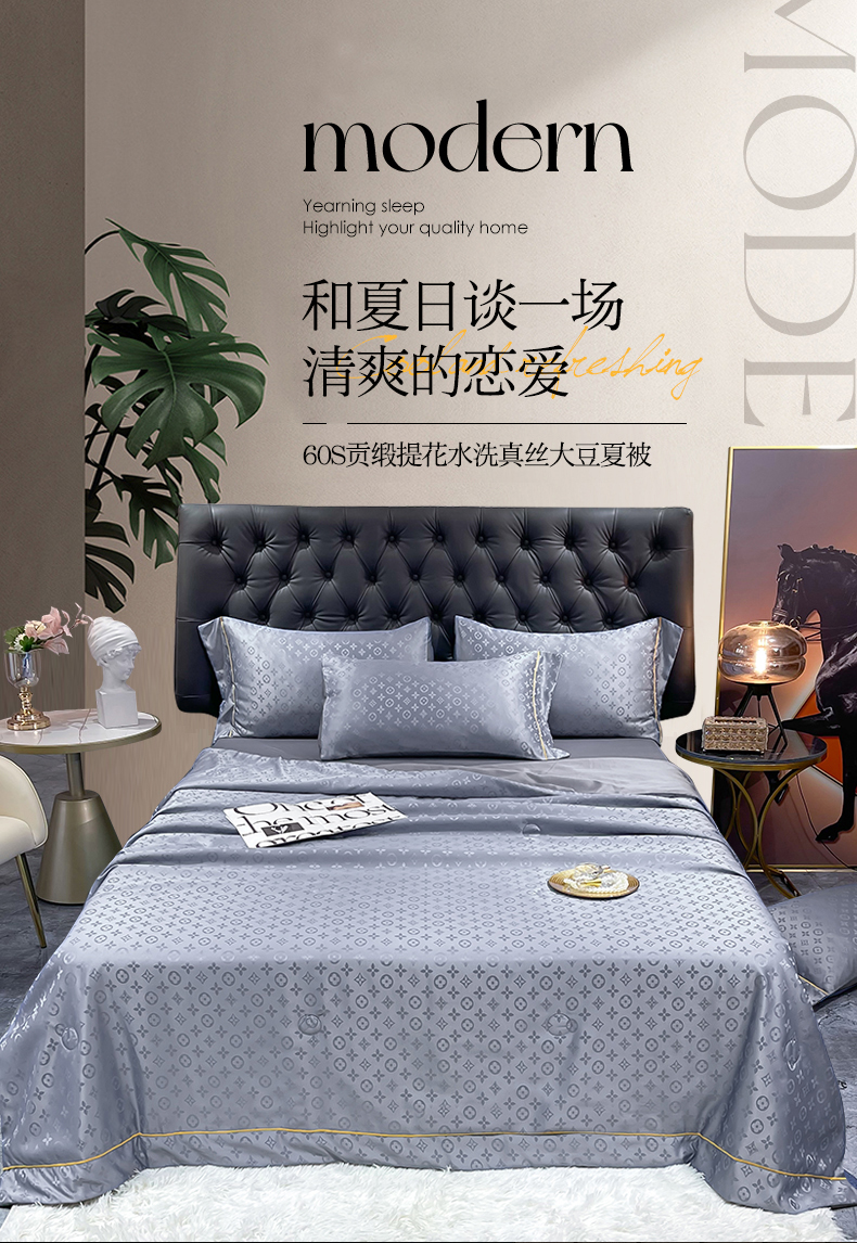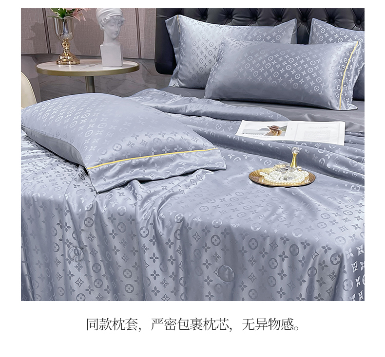 商品名称:(总)经年 2025新款60S贡缎提花水洗真丝冰丝天丝大豆夏被四件套直播爆款