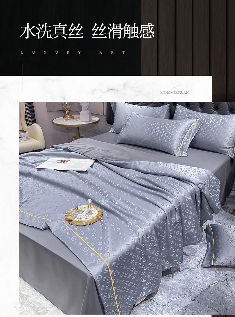 (总)经年 2025新款60S贡缎提花水洗真丝冰丝天丝大豆夏被四件套直播爆款