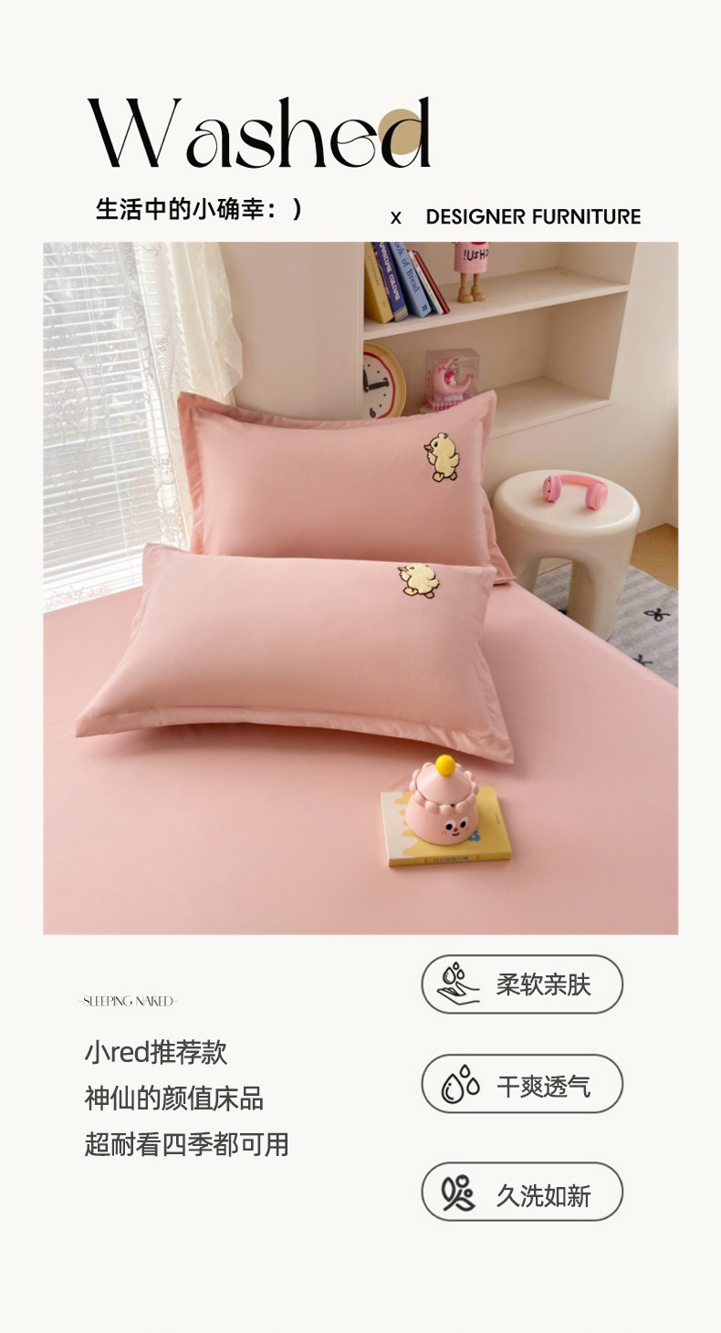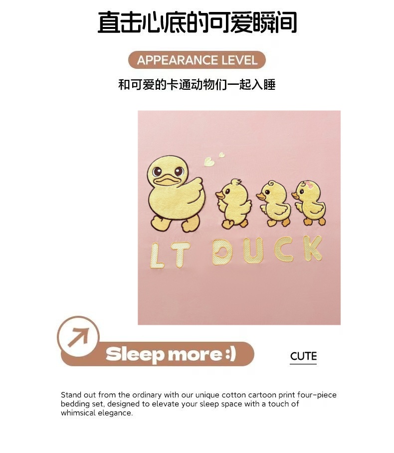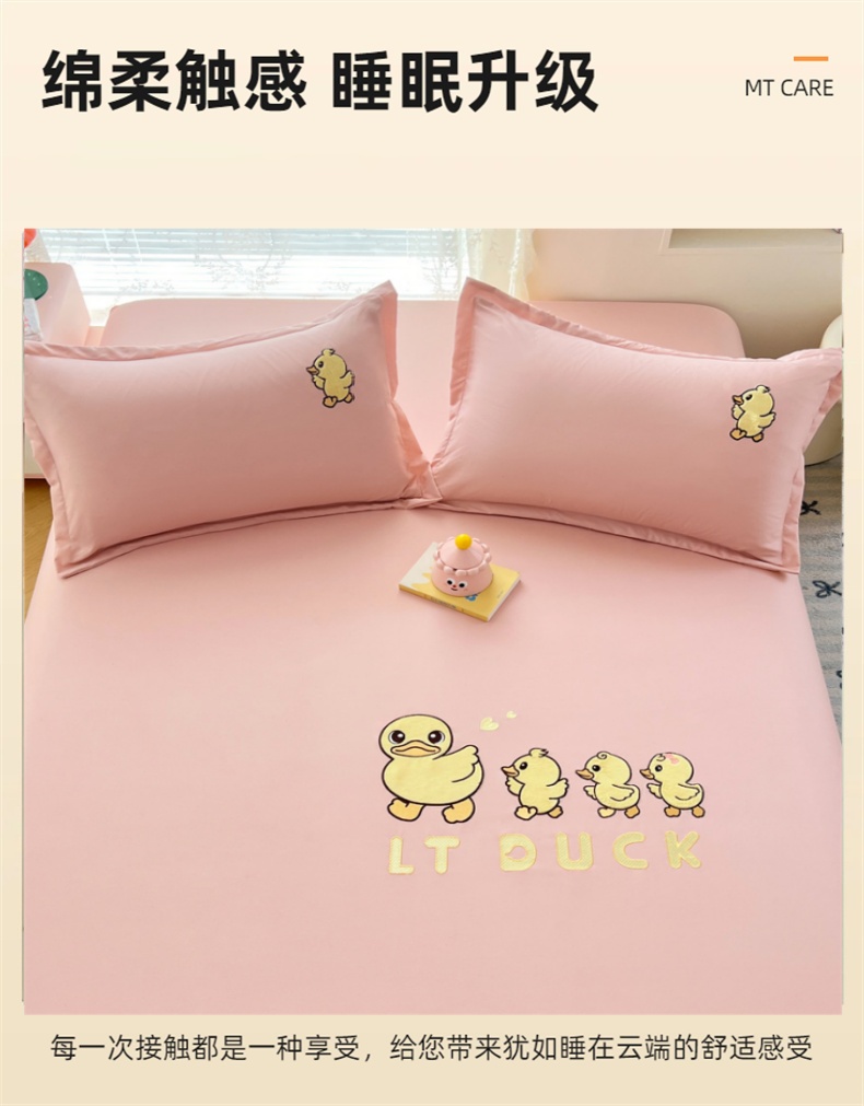 商品名称:梦舒羽 2025新款贴布绣针织棉双层纱枕套 旅行鸭-浅粉
