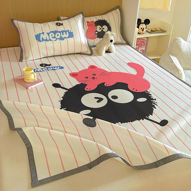昊川家纺 2025新款大版数码印花碳光冰丝席 小煤球