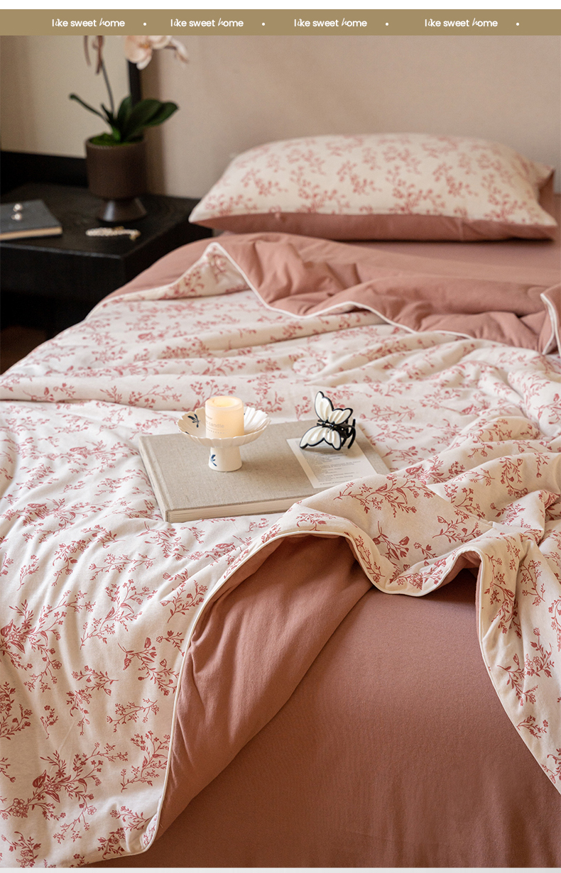 (总)华超针织 2025新款亲肤舒适全棉纯棉针织五件套四件套,奶糖+樱桃,杏粉+花田,杏灰+玫瑰