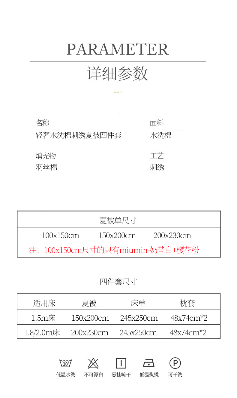150x200cm夏被四件套 | ¥70.00 |