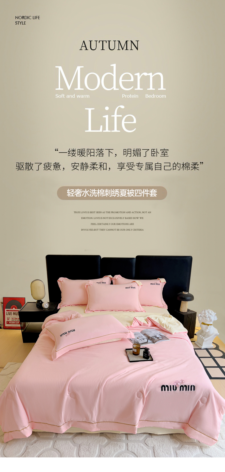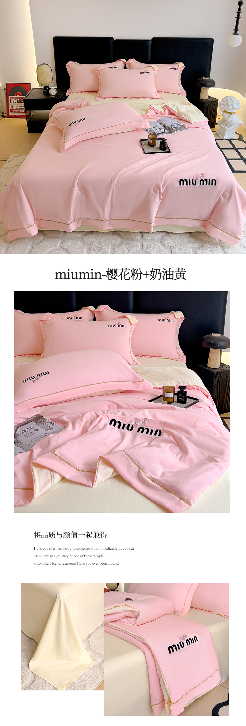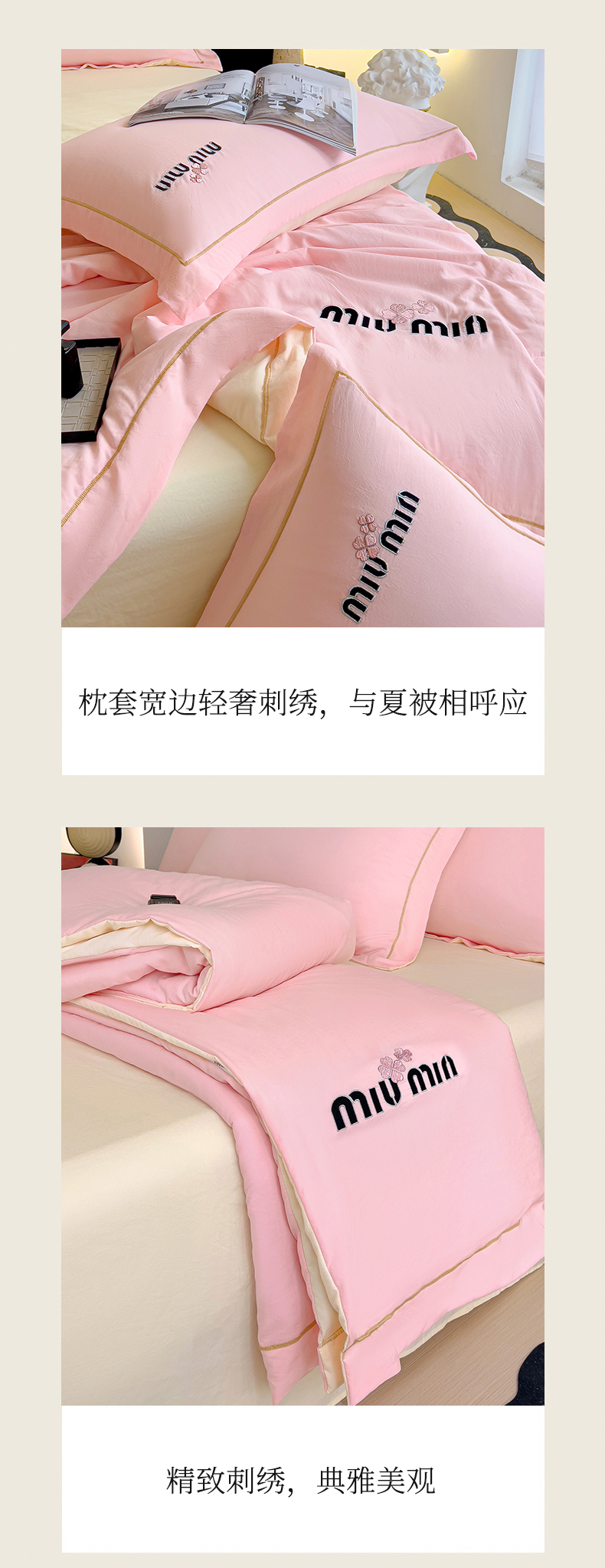 当前位置: 91家纺网 > 商品网购 > 床品套件 > 四件套 > 夏被四件套 > 灰鲸 2025新款轻奢miumin刺绣水洗棉夏被四件套系列 miumin-樱花粉+奶油黄