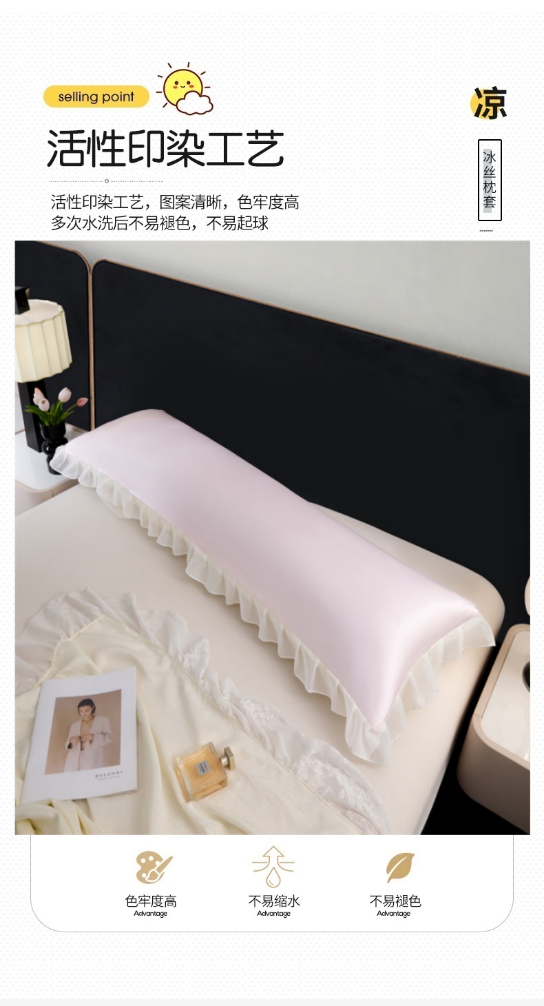商品名称:圣比熊 2025新款公主风夏季冰丝枕套双人情侣枕头套加长枕芯套1.5m内胆套 花边款-淡雅玉