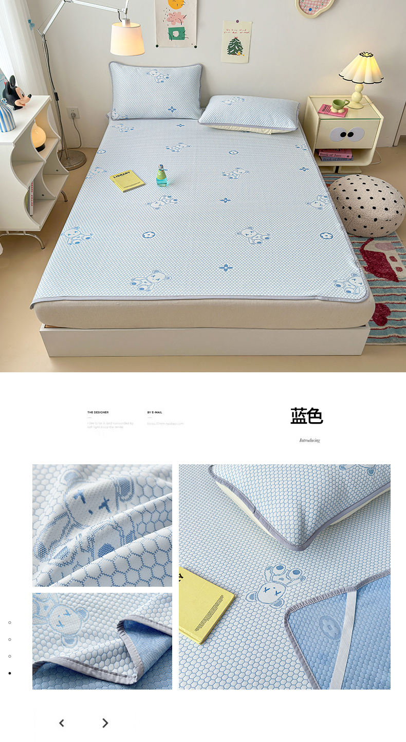 商品名称:席佬大 2025新款提花冰豆豆凉席三件套 蓝色