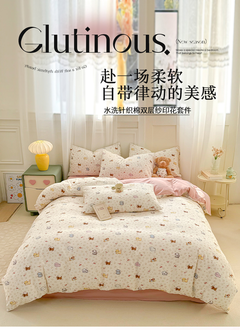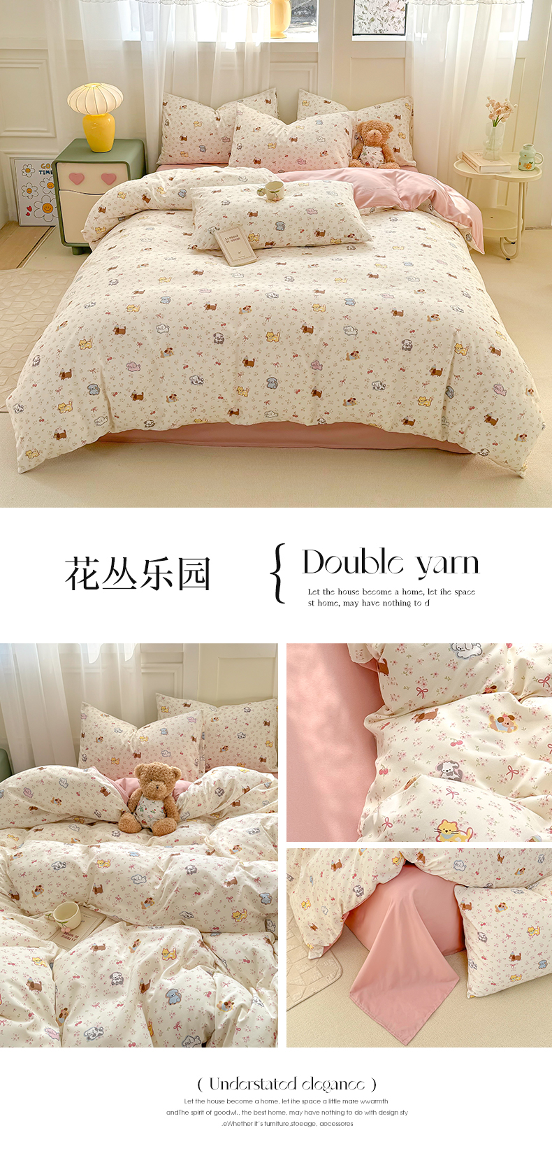 当前位置: 91家纺网 > 商品网购 > 床品套件 > 四件套 > 针织棉四件套 > 丝芙妮家居2025新款水洗针织棉双层纱印花四件套 花丛乐园