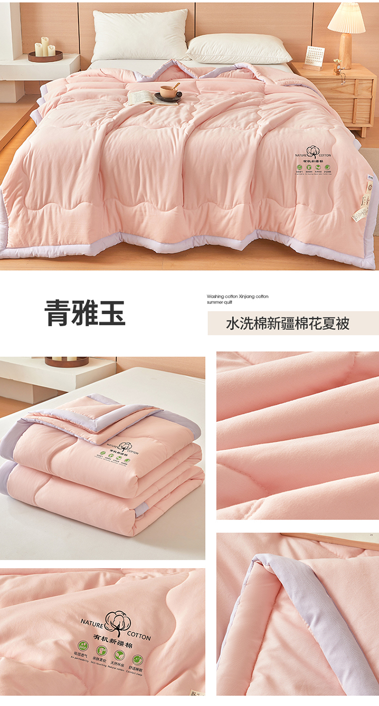 商品名称:易博家纺 2025新款格子纯色水洗棉无印风百分百新疆棉花夏被夏凉被被子被芯 青雅玉