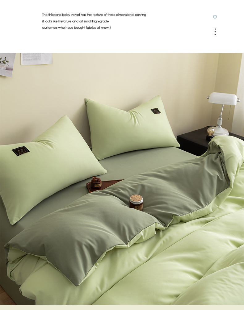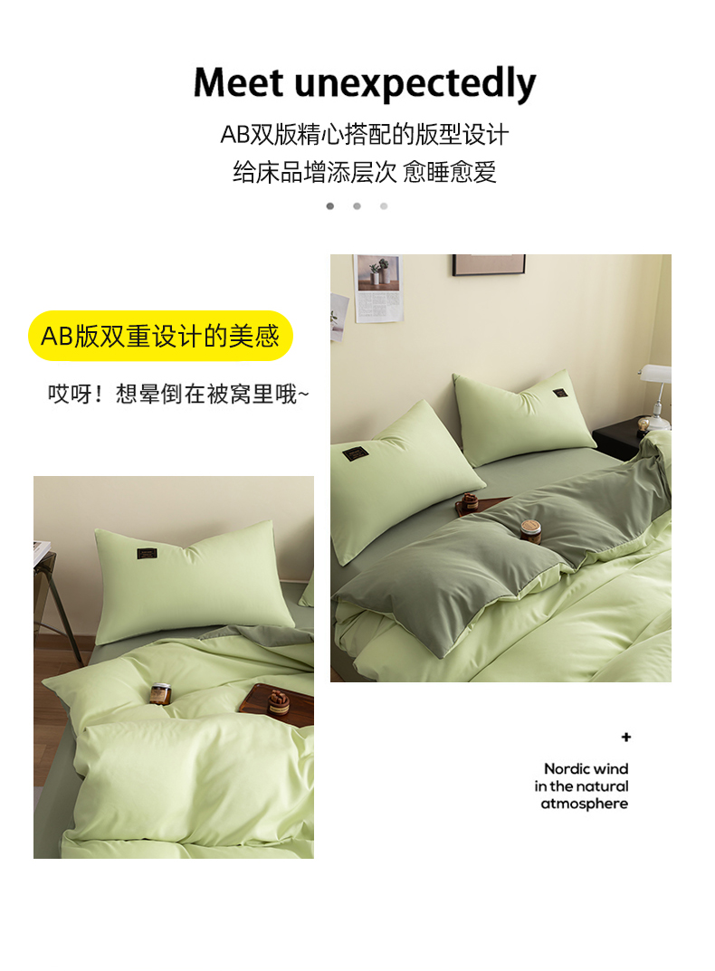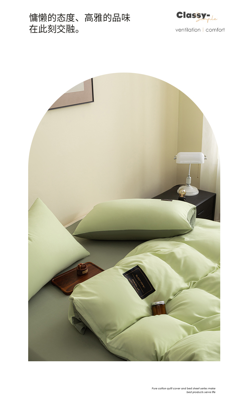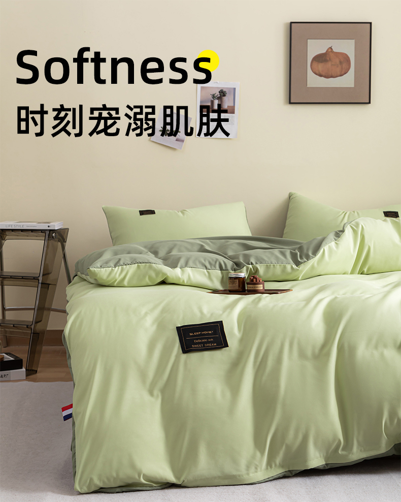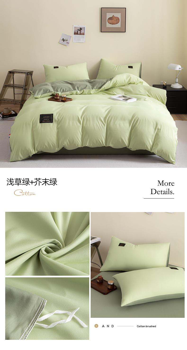 商品名称:恋之语 2025新款90克纯色双拼单被套 浅草绿+芥末绿